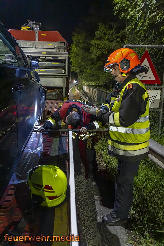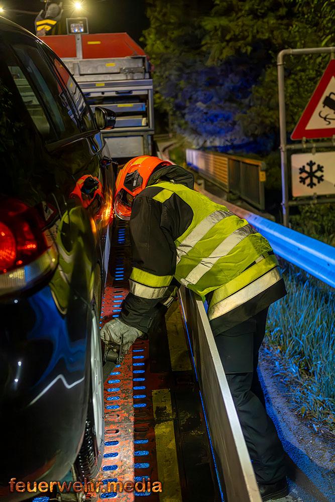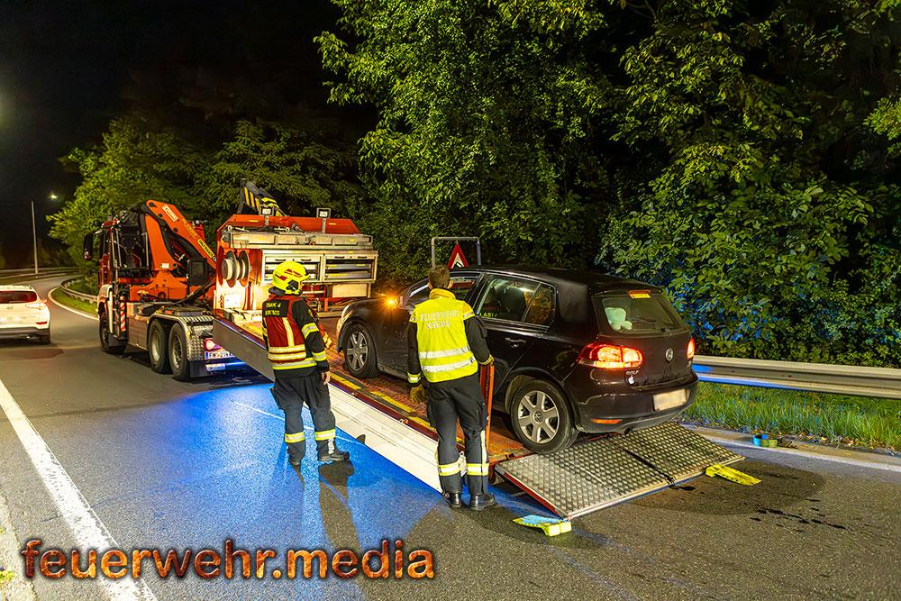Der Diensthabende der Bezirksalarmzentrale Krems alarmierte die Einsatzkräfte, nachdem ein Fahrzeug bei einem Unfall beschädigt wurde und von der Auffahrt geborgen werden musste.