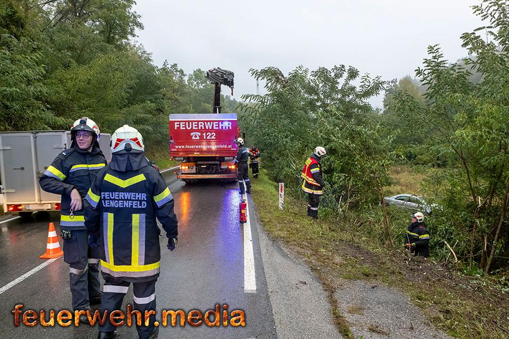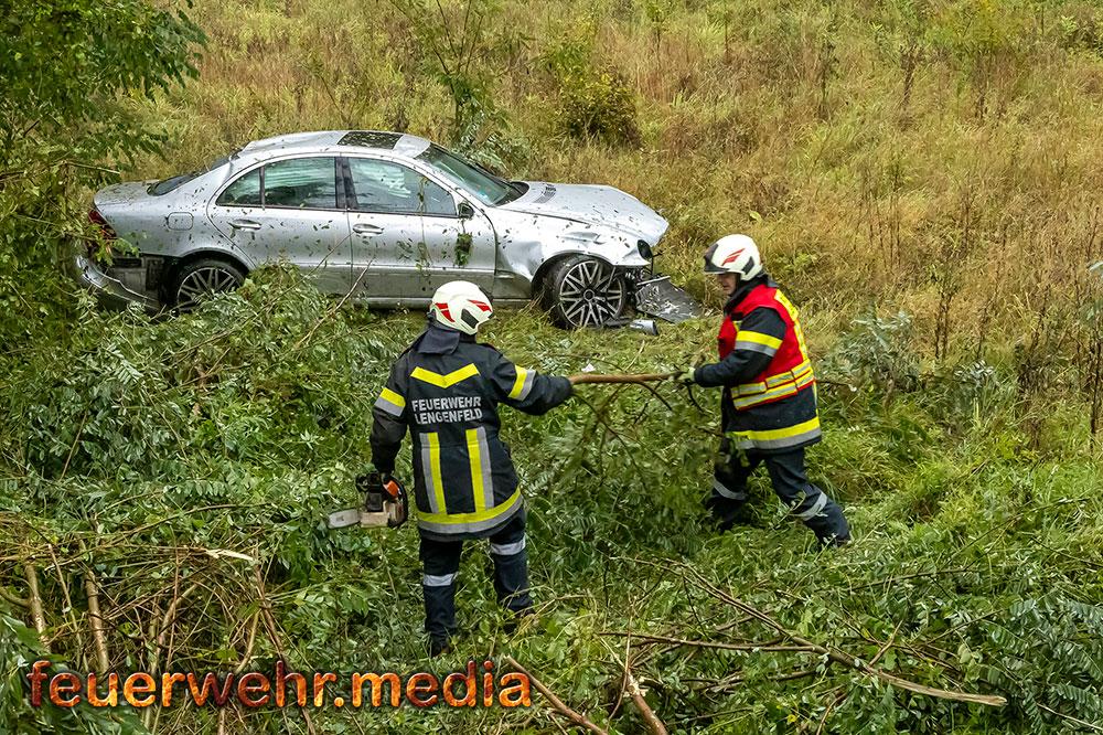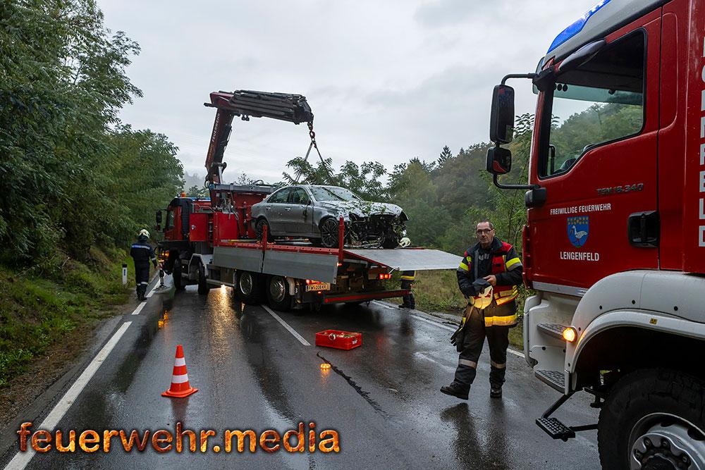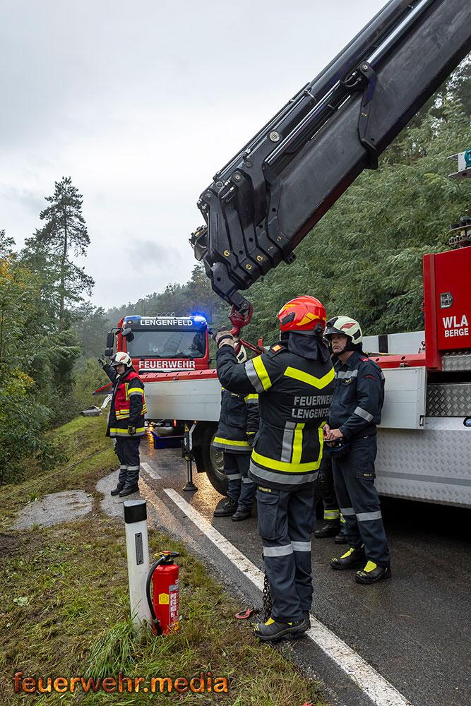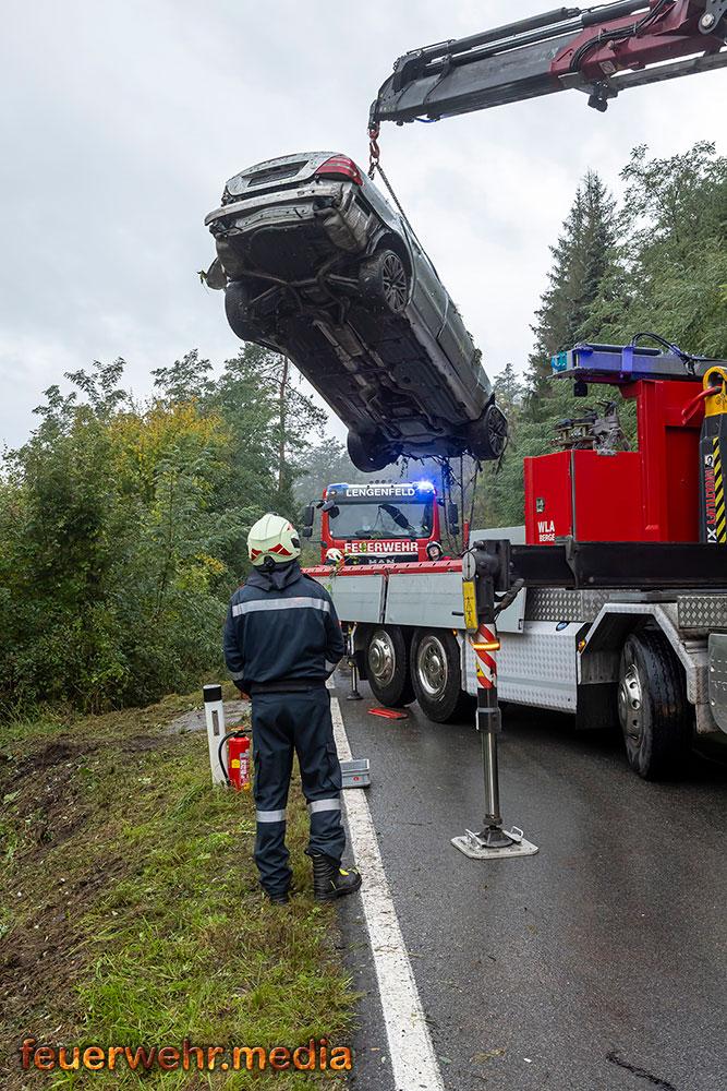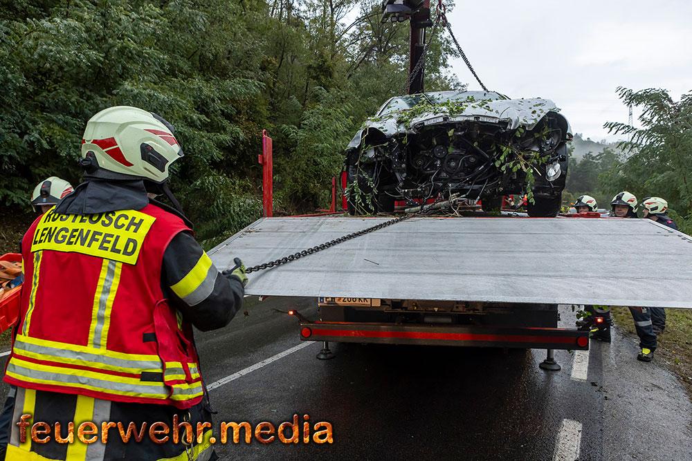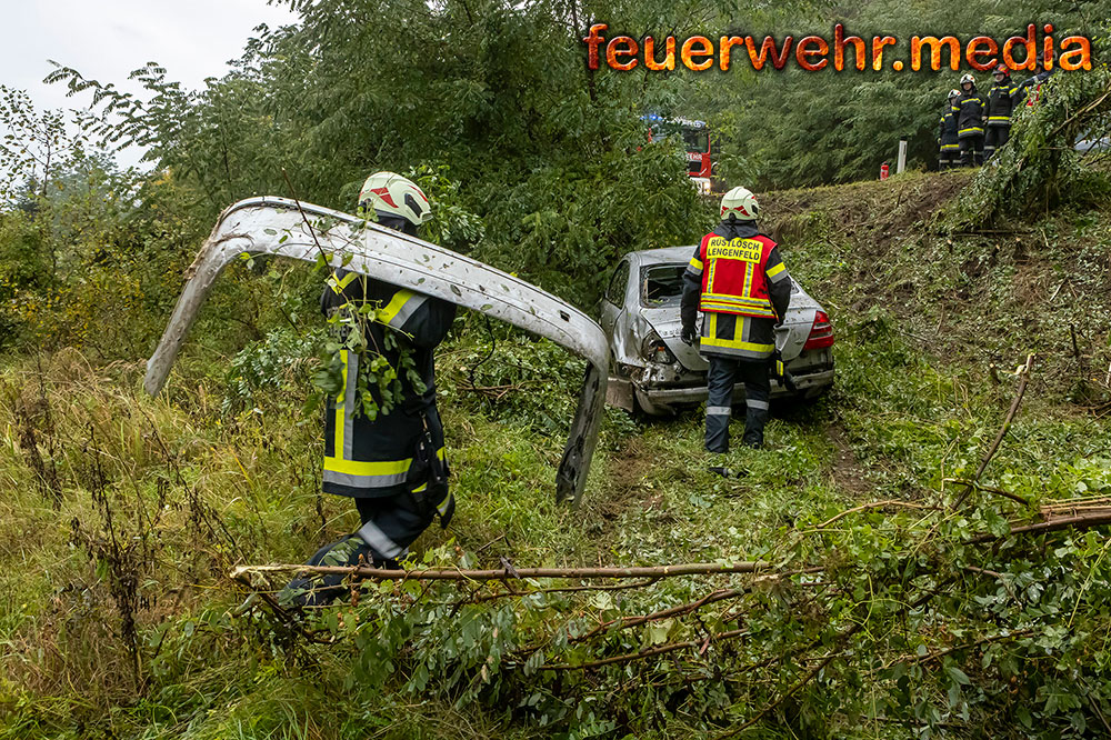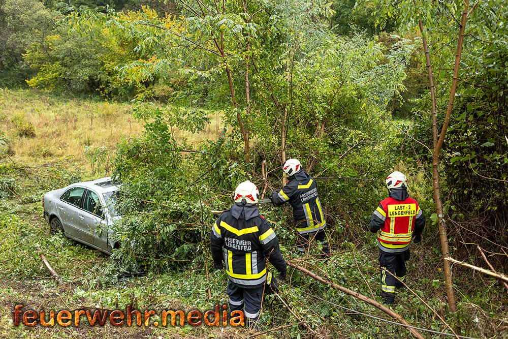 Die Aufgabe der zehn Mitglieder der Freiwilligen Feuerwehr Lengenfeld, die mit drei Fahrzeugen ausgerückt waren, gestaltete sich aufgrund der Lage des Unfallwracks als schwierig. Das Fahrzeug lag tief in der Böschung, eingebettet zwischen Bäumen.