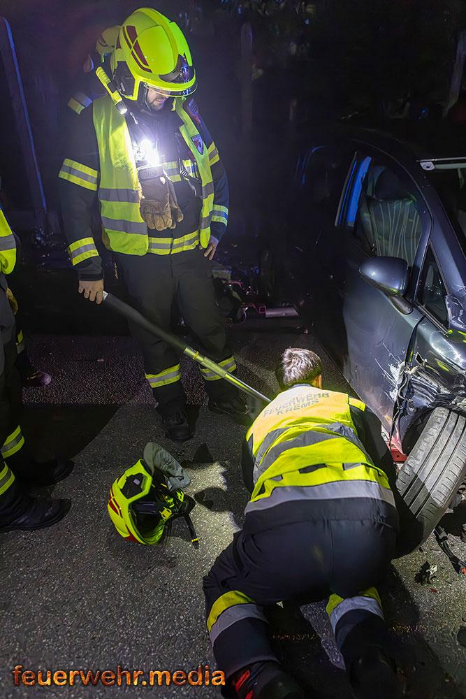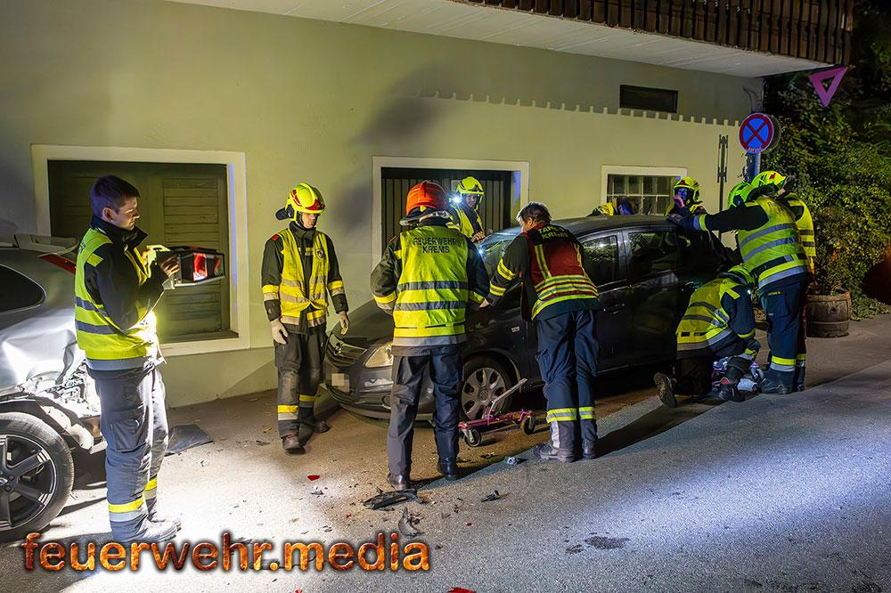 In der Nacht auf Sonntag, den 12. Oktober 2025, wurde die Hauptwache der Freiwilligen Feuerwehr Krems zu einer Fahrzeugbergung in die Schießstattgasse alarmiert. Ein Pkw war aus bislang ungeklärter Ursache mit einem ordnungsgemäß abgestellten Fahrzeug kollidiert.
