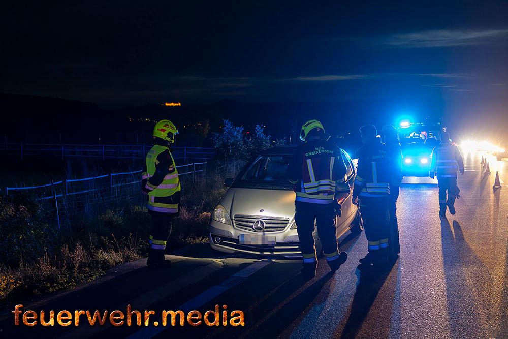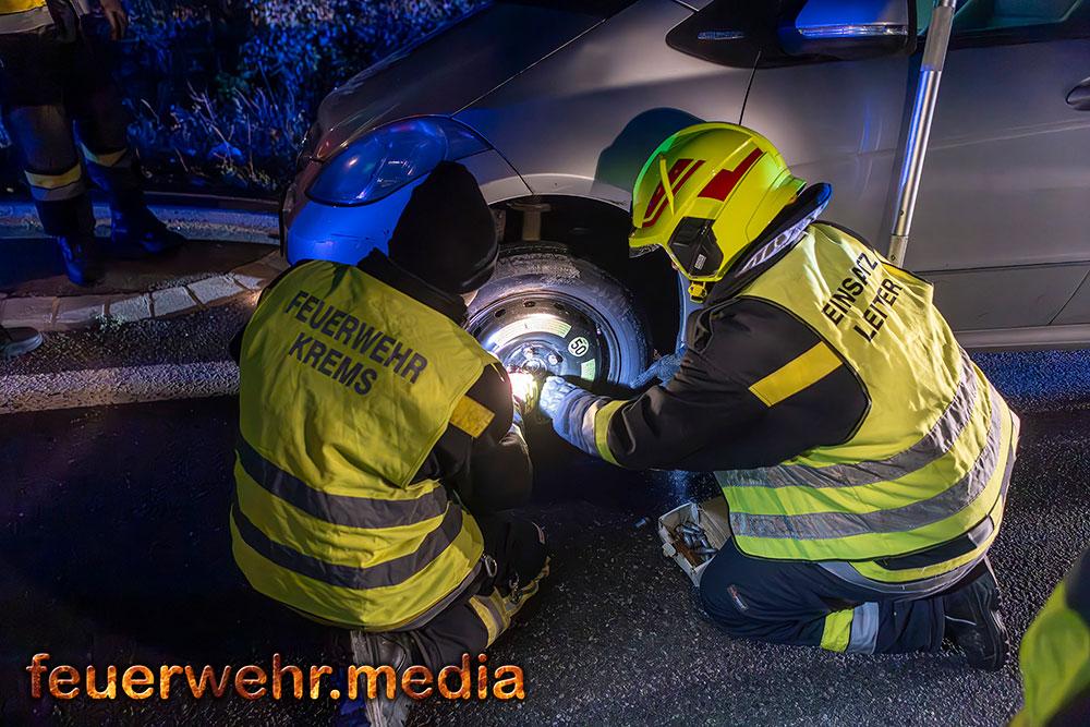 Am frühen Abend des 19. Oktober 2025 wurde die Feuerwehr Krems an der Donau mit der Feuerwache Gneixendorf zu einem technischen Einsatz auf die B37 alarmiert. Die Autobahnpolizei Krems hatte bei Kilometer 4,6 – kurz nach der Tankstelle in Fahrtrichtung Zwettl – ein verlassenes Fahrzeug festgestellt, dem der linke Vorderreifen fehlte.