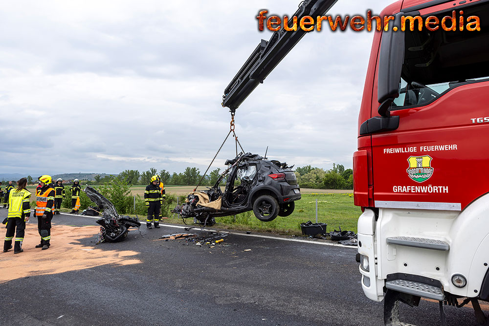 Durch die Bezirksalarmzentrale Krems wurden die Freiwilligen Feuerwehren Gedersdorf, Rohrendorf und Grafenwörth zur Menschenrettung alarmiert. Trotz des raschen Einsatzes von Feuerwehr und Rettungsdienst konnte der verunfallten Pkw-Lenkerin nicht mehr geholfen werden. Sie erlag noch an der Unfallstelle ihren schweren Verletzungen. Der Lkw-Fahrer wurde mit Verletzungen unbestimmten Grades in das UKH Krems eingeliefert.