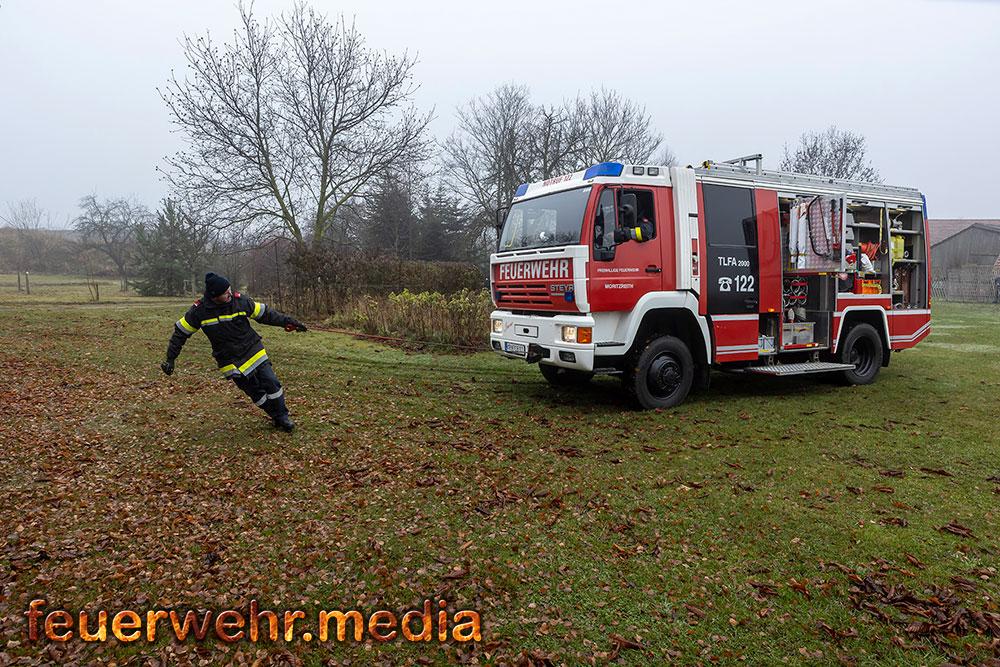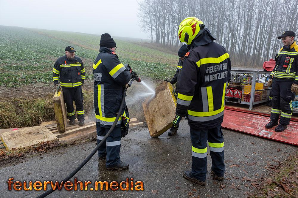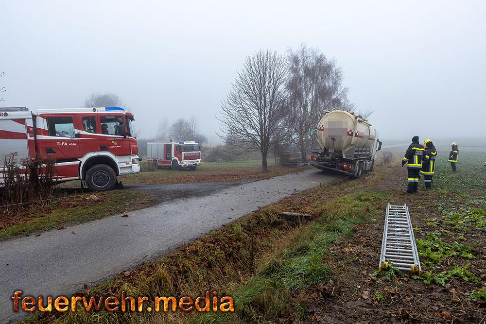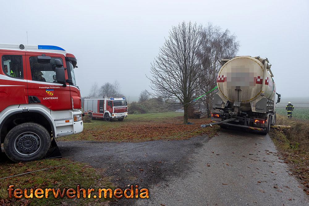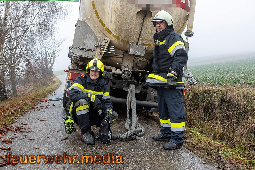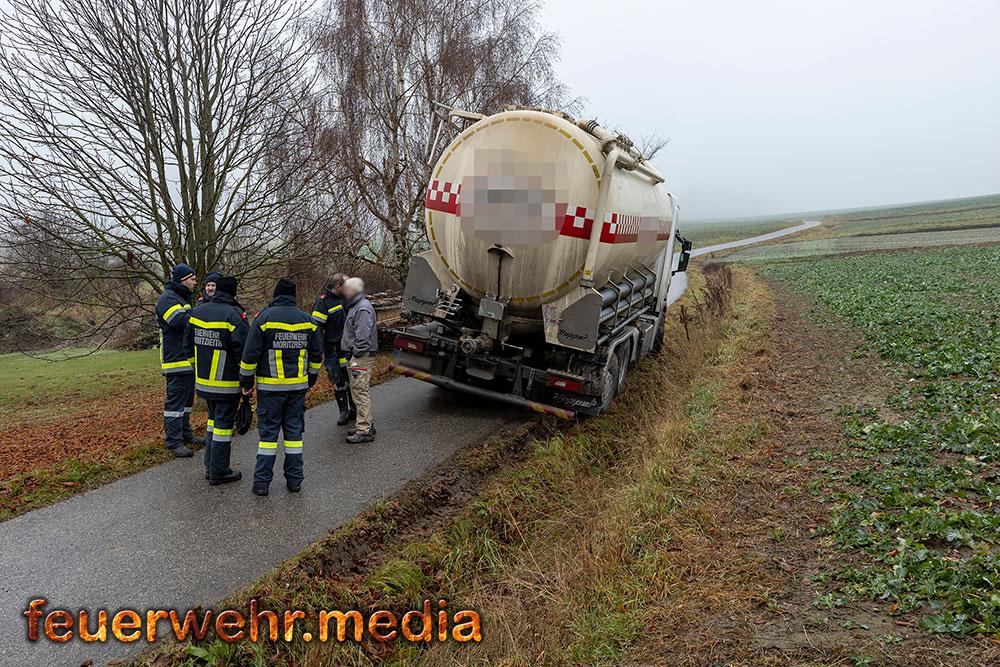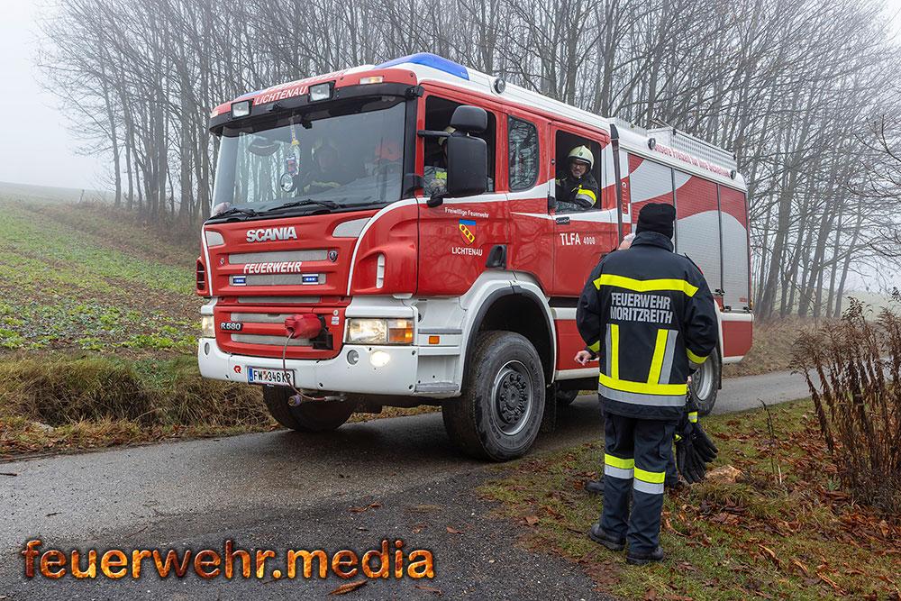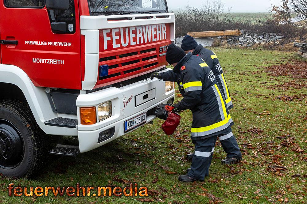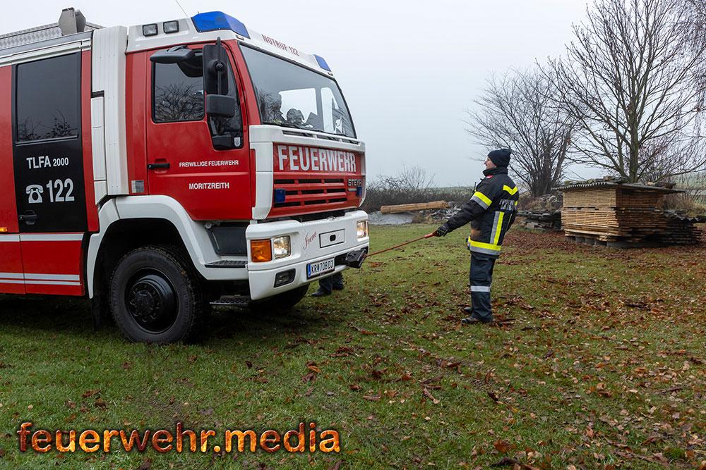 Ein ungewöhnlicher Einsatz forderte am 2. Dezember die Freiwilligen Feuerwehren Moritzreith und Rastbach. Kurz nach 11 Uhr geriet ein Lastkraftwagen in der Gemeinde Moritzreith in eine gefährliche Schräglage, nachdem der Fahrer auf einer schmalen Straße einem Hund ausweichen musste und daraufhin in einem Entwässerungsgraben landete.