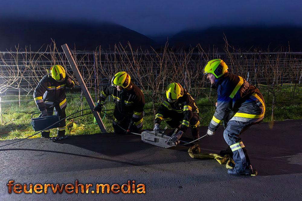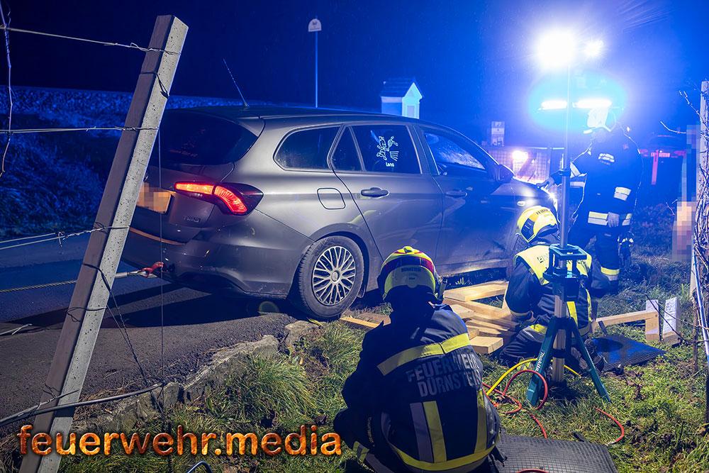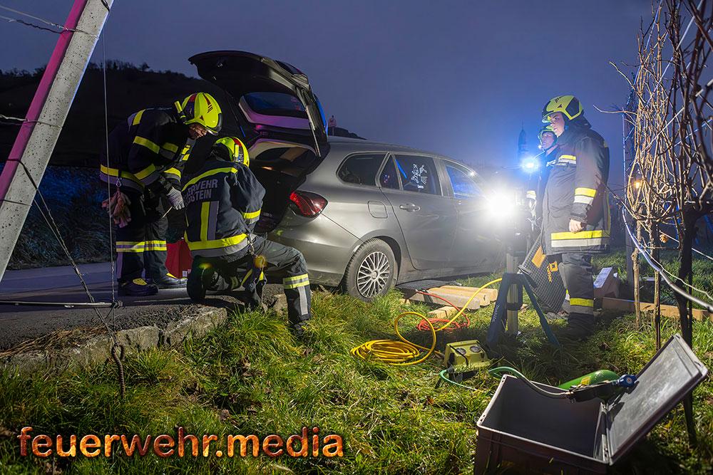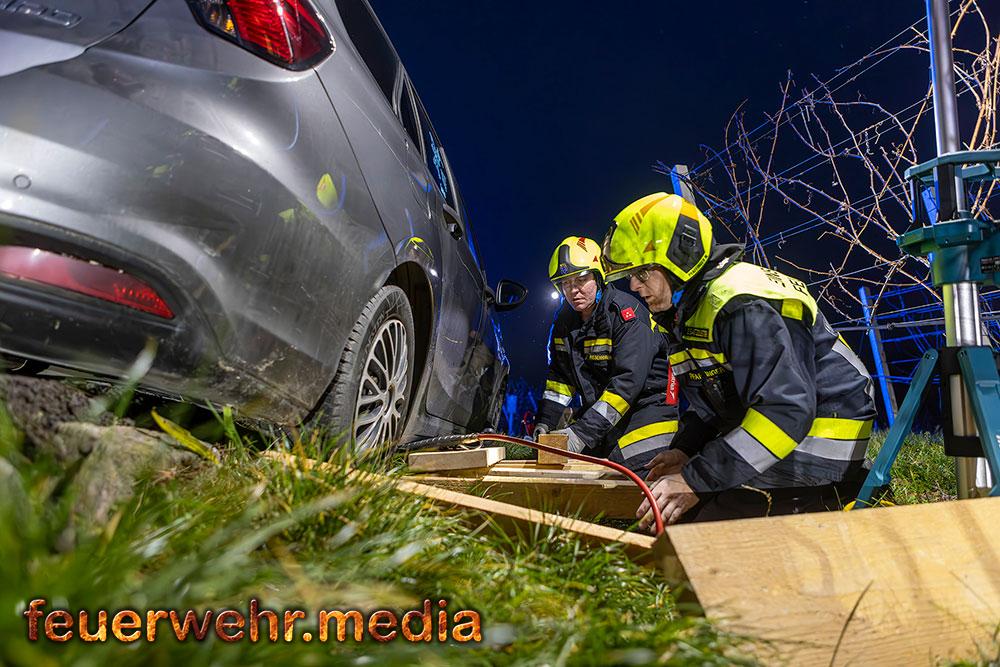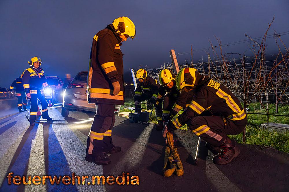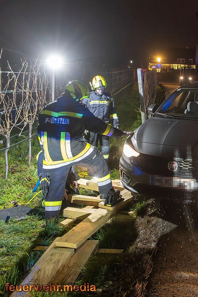 Die von der Bezirksalarmzentrale Krems alarmierte Freiwillige Feuerwehr Dürnstein rückte umgehend zum nahegelegenen Einsatzort aus. Nach der Lageerkundung wurde die Einsatzstelle abgesichert. In weiterer Folge entschied der Einsatzleiter, das Fahrzeug anzuheben und wieder auf die Fahrbahn zurückzuziehen.