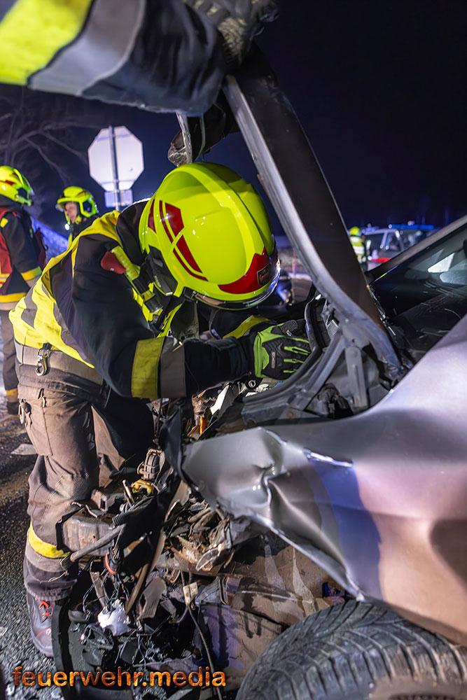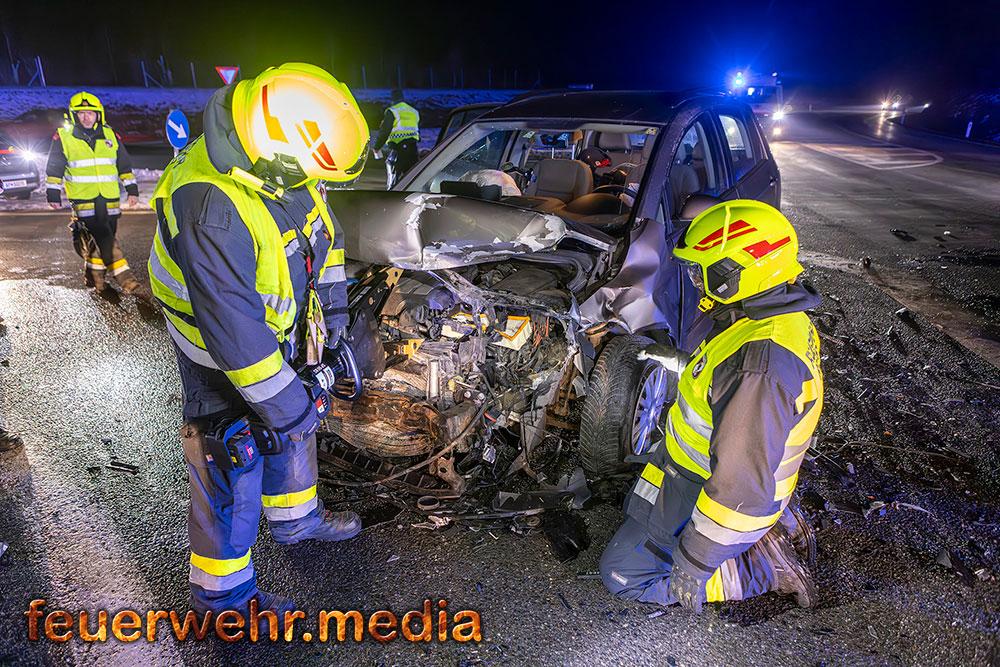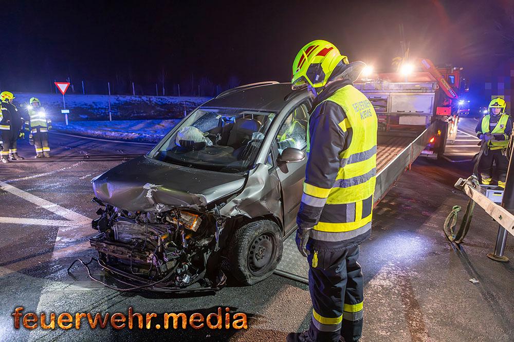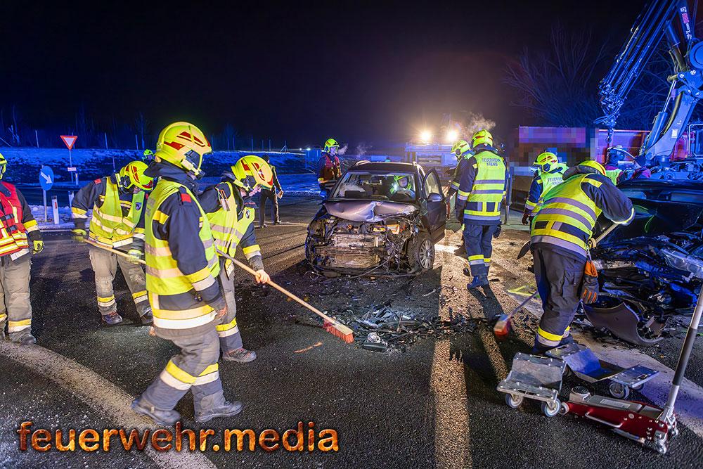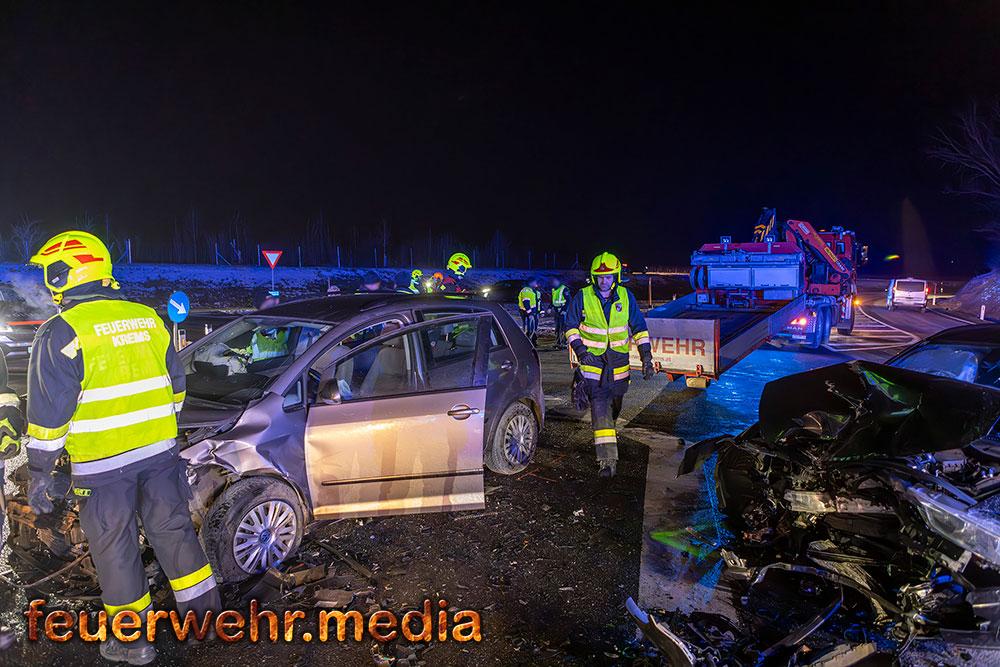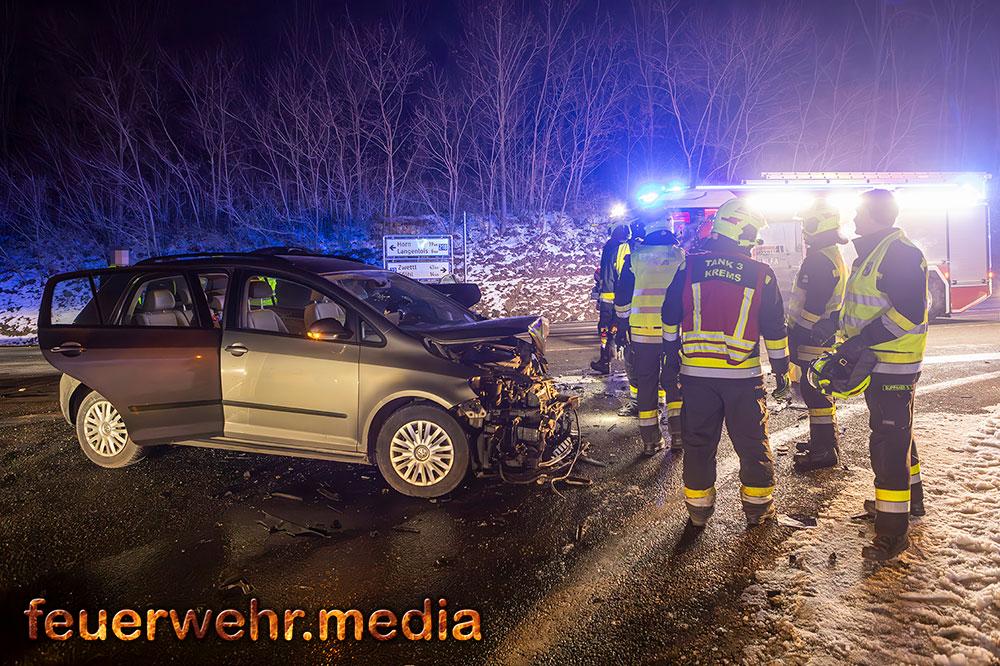 Zwei Pkw waren frontal kollidiert und stark beschädigt zum Stillstand gekommen, es befand sich jedoch keine Person in den Fahrzeugen eingeklemmt. Die beiden Fahrzeuglenker wurden Sanitätern des Roten Kreuz Krems versorgt und erlitten jeweils leichte Verletzungen.