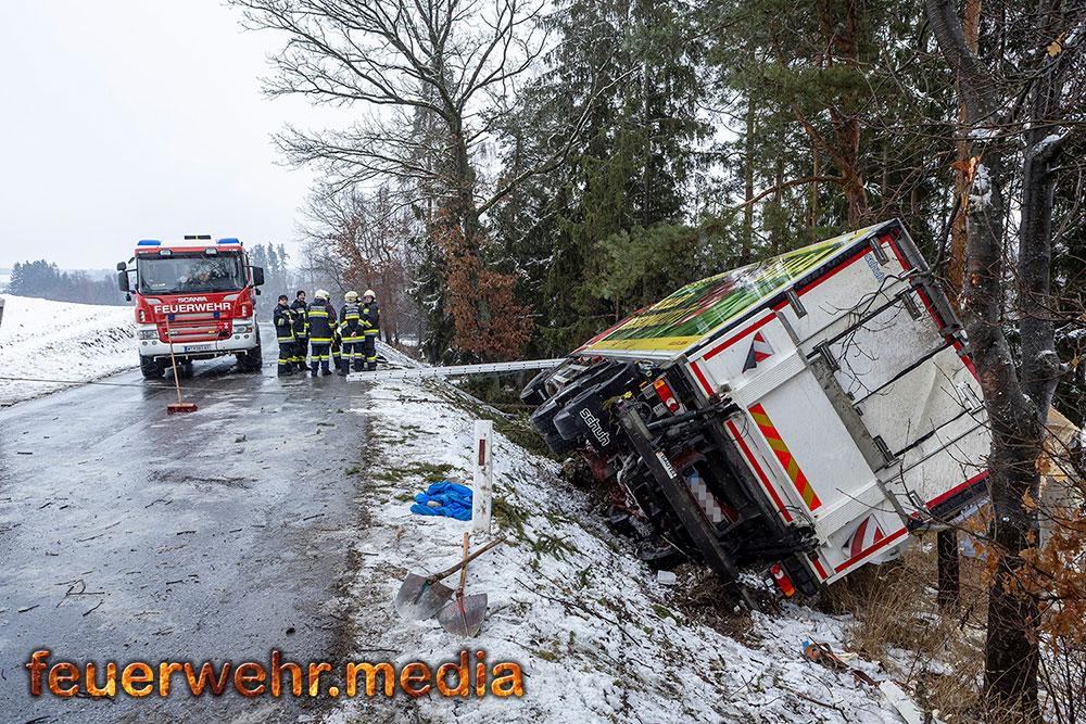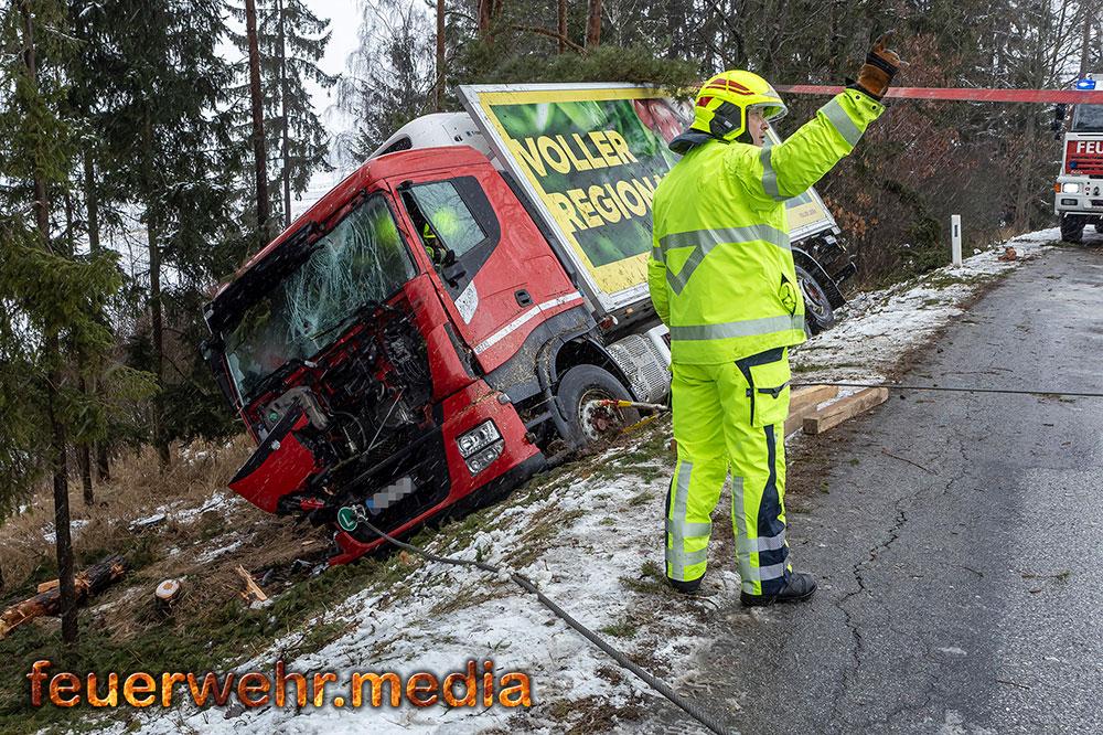 Am Vormittag des 29. Jänner 2026, wurde die Feuerwehr Krems zur Unterstützung in den Bezirk Waidhofen an der Thaya alarmiert. Ein verunfallter Lkw drohte in einem Waldstück abzustürzen und musste in einem mehrstündigen Einsatz geborgen werden.
