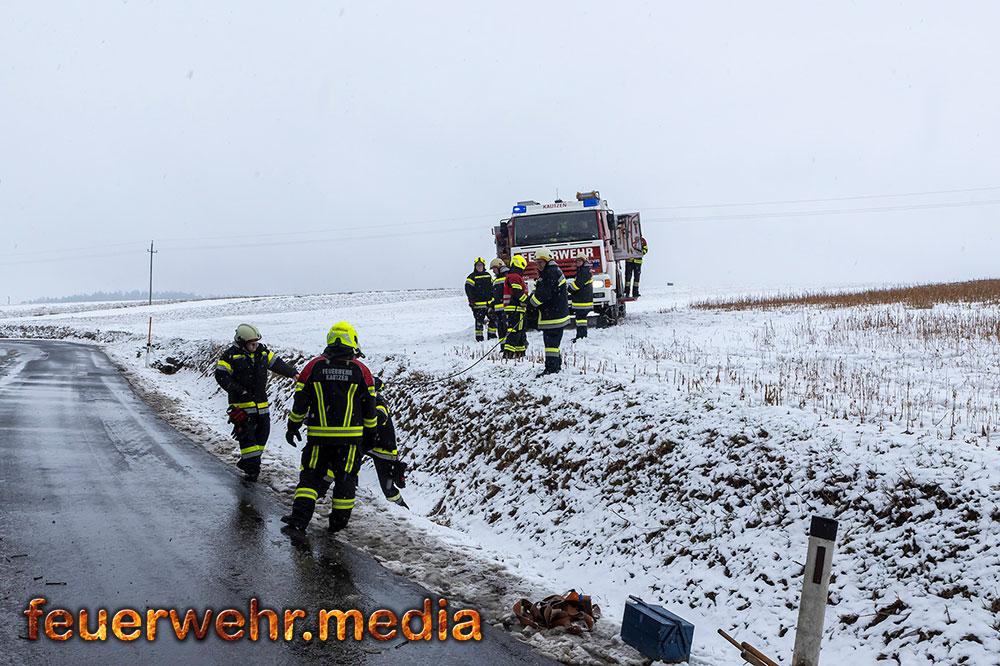 Zuvor waren bereits die Freiwilligen Feuerwehren Gastern, Kautzen und Dobersberg zu einem schweren Verkehrsunfall mit eingeklemmter Person auf die L63 gerufen worden. Ein Lastwagen war in einer abschüssigen Linkskurve von der Fahrbahn abgekommen, hatte zwei Bäume gefällt und war in gefährlicher Schräglage zum Stillstand gekommen. Nur das Glück und einige noch stehende Bäume verhinderten den vollständigen Absturz des Schwerfahrzeugs.