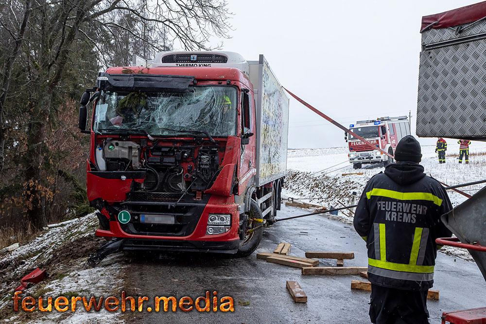 Am Vormittag des 29. Jänner 2026, wurde die Feuerwehr Krems zur Unterstützung in den Bezirk Waidhofen an der Thaya alarmiert. Ein verunfallter Lkw drohte in einem Waldstück abzustürzen und musste in einem mehrstündigen Einsatz geborgen werden.