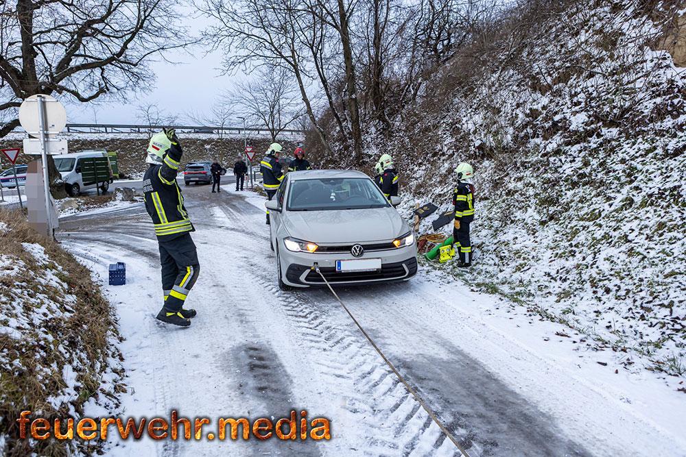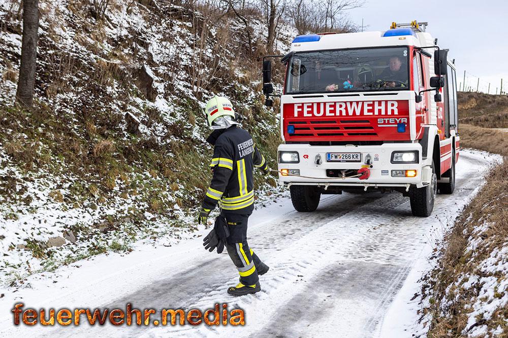 In den Morgenstunden des 17. Februar 2026 wurde die Freiwillige Feuerwehr Langenlois zu einer Fahrzeugbergung an den Großen Buriweg gerufen. Eine Pkw-Lenkerin war mit ihrem Fahrzeug von der Fahrbahn abgekommen; der Wagen rutschte in den Straßengraben und saß dort so massiv auf, dass eine Weiterfahrt aus eigener Kraft unmöglich war.