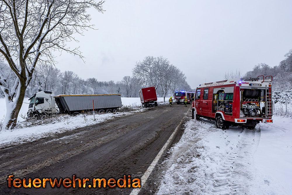 Der Einsatz begann bereits kurz nach 7.00 Uhr morgens, als die Freiwillige Feuerwehr Gossam zur Unfallstelle alarmiert wurde. Nur wenig später folgte die Alarmierung der FF Emmersdorf. Vor Ort zeigte sich eine dramatische Szene: Ein Sattelzug war von der Fahrbahn abgekommen und im Graben gelandet. Ein zweiter Lkw-Lenker, der dem Verunfallten sofort zu Hilfe eilen wollte, wurde selbst zum Pechvogel. Beim Abbremsen auf der spiegelglatten Fahrbahn rutschte sein Anhänger ebenfalls in den Straßengraben.