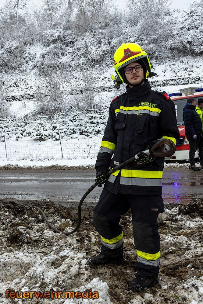 Zu einem fordernden Einsatz wurden die Feuerwehren Gossam, Emmersdorf und Krems am Freitagmorgen, den 20. Februar 2026, gerufen. Ein schwerer Lkw-Unfall auf winterlicher Fahrbahn und ein missglückter Hilfeversuch sorgten für eine stundenlange Bergungsaktion.