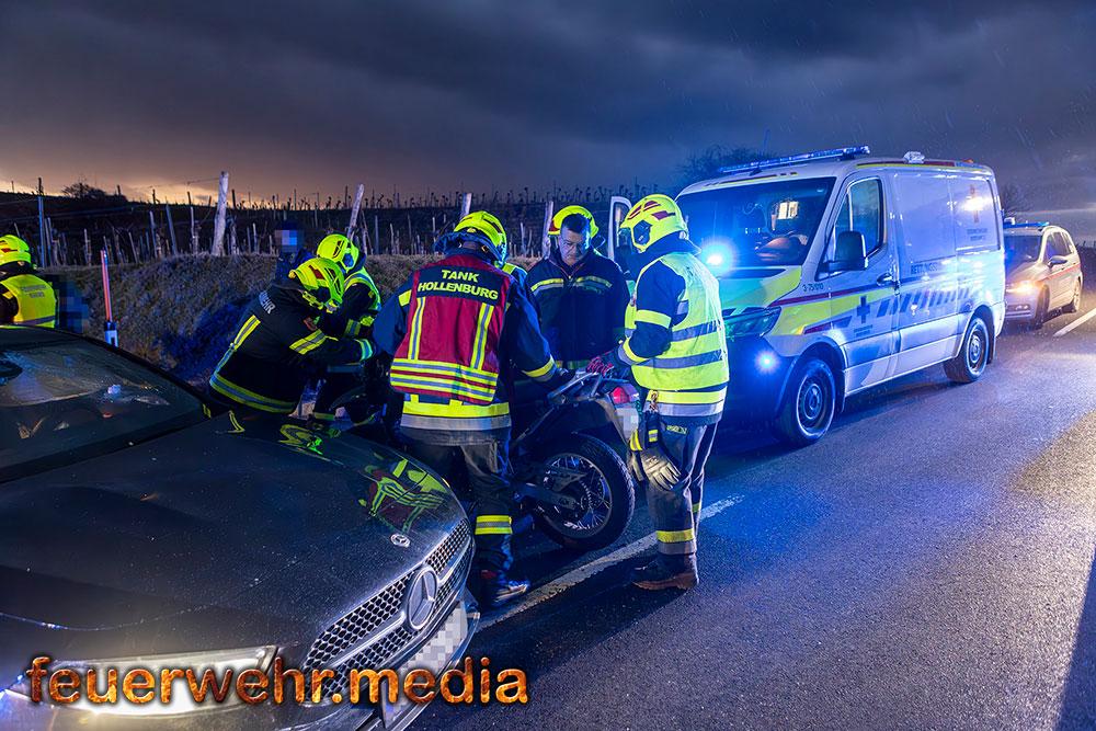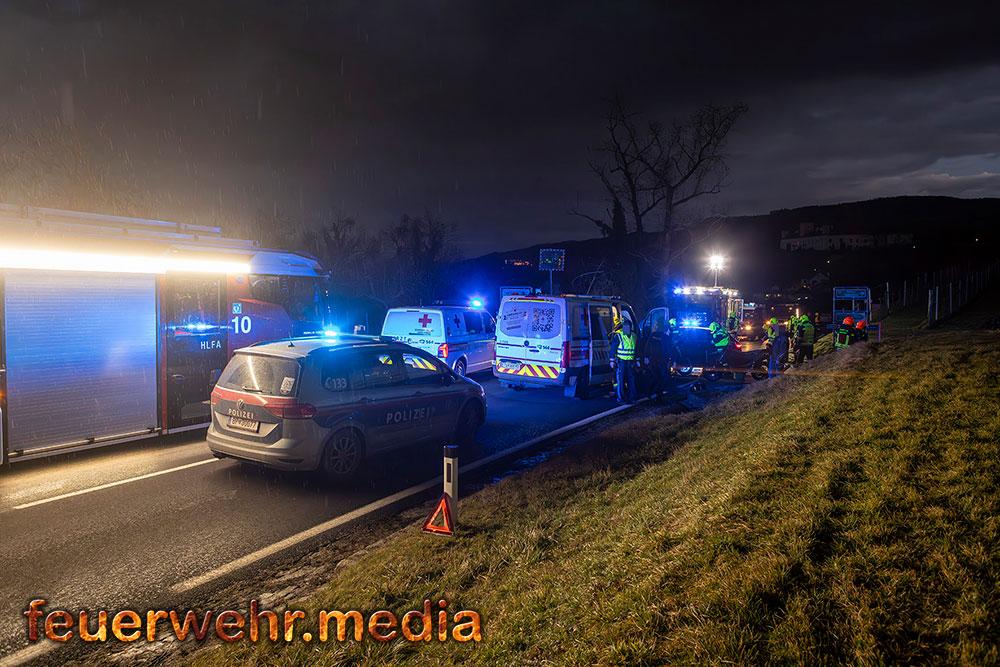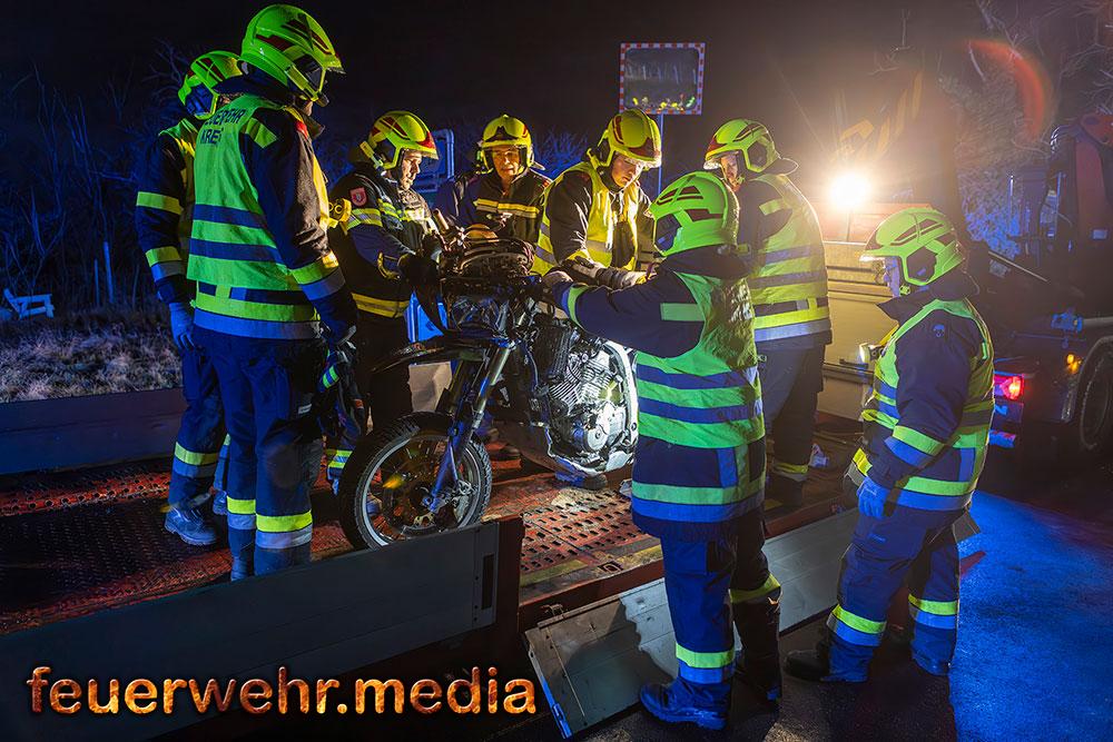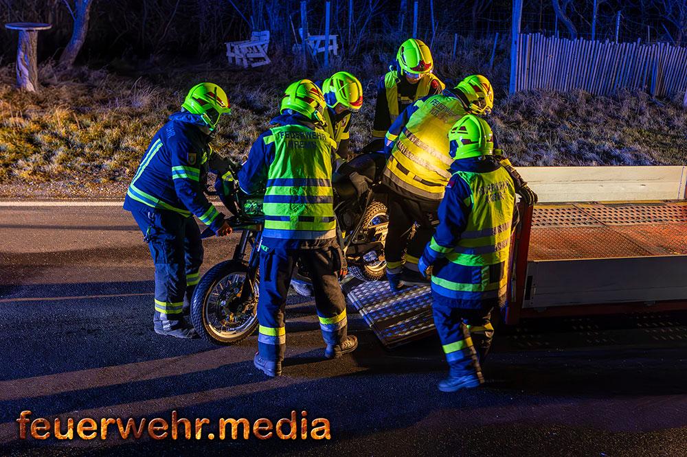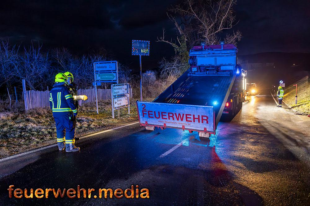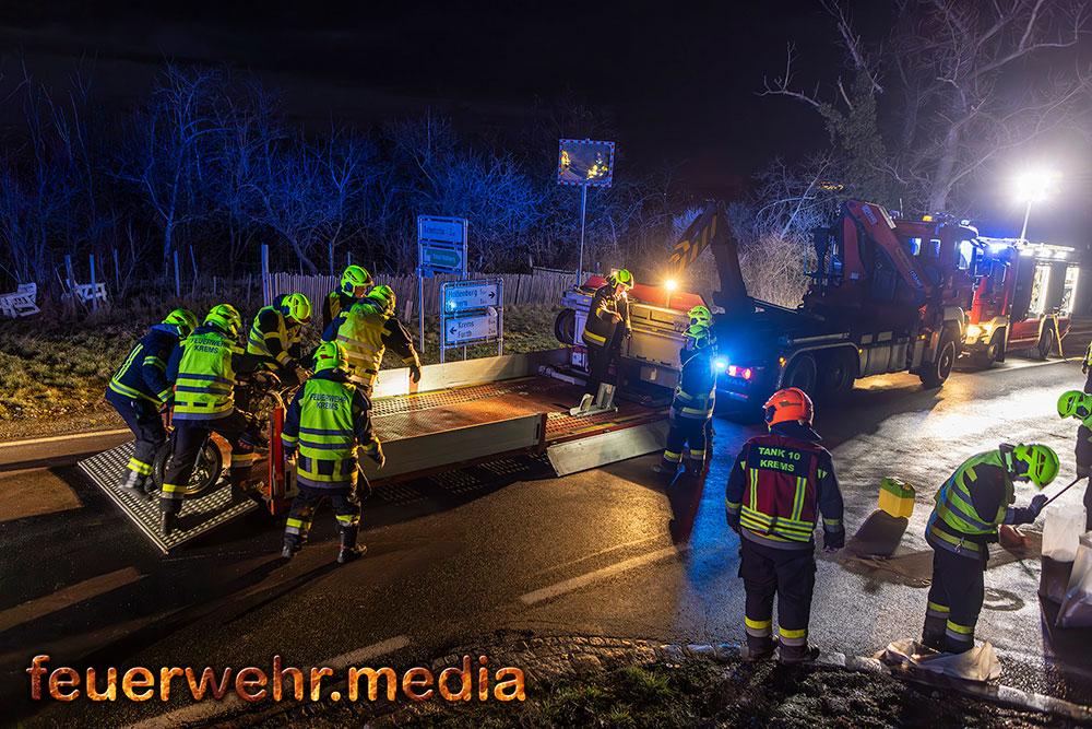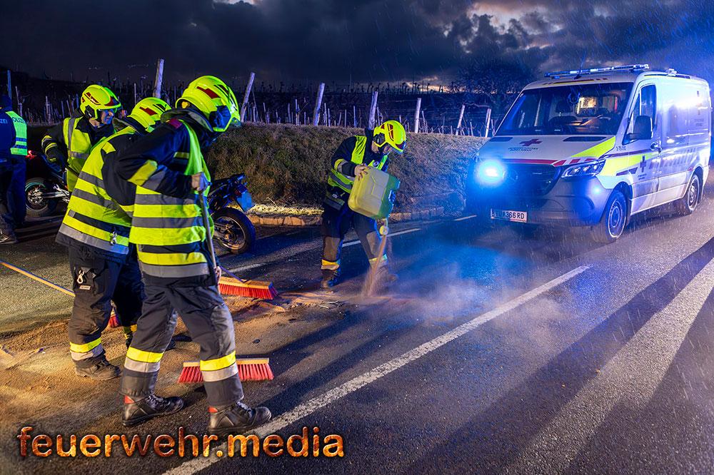Zu einem Zusammenstoß zwischen einem Pkw und einem Motorrad kam es am frühen Abend des 24. Februar 2026 im Kreuzungsbereich der L114 mit der Tiefenfuchastraße, L7097. Zwei Feuerwachen der Freiwilligen Feuerwehr Krems standen über drei Stunden im Einsatz, um die Unfallstelle zu räumen und ausgetretene Betriebsmittel zu binden.