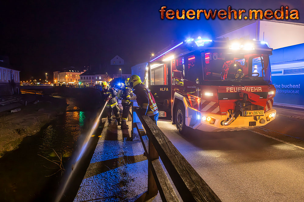 Zu einem Brandeinsatz an der Kremstalstraße musste die Hauptwache der Feuerwehr Krems am Abend des 8. März 2026 ausrücken. Direkt am Ufer der Krems war aus bisher unbekannter Ursache die Böschung in Brand geraten.