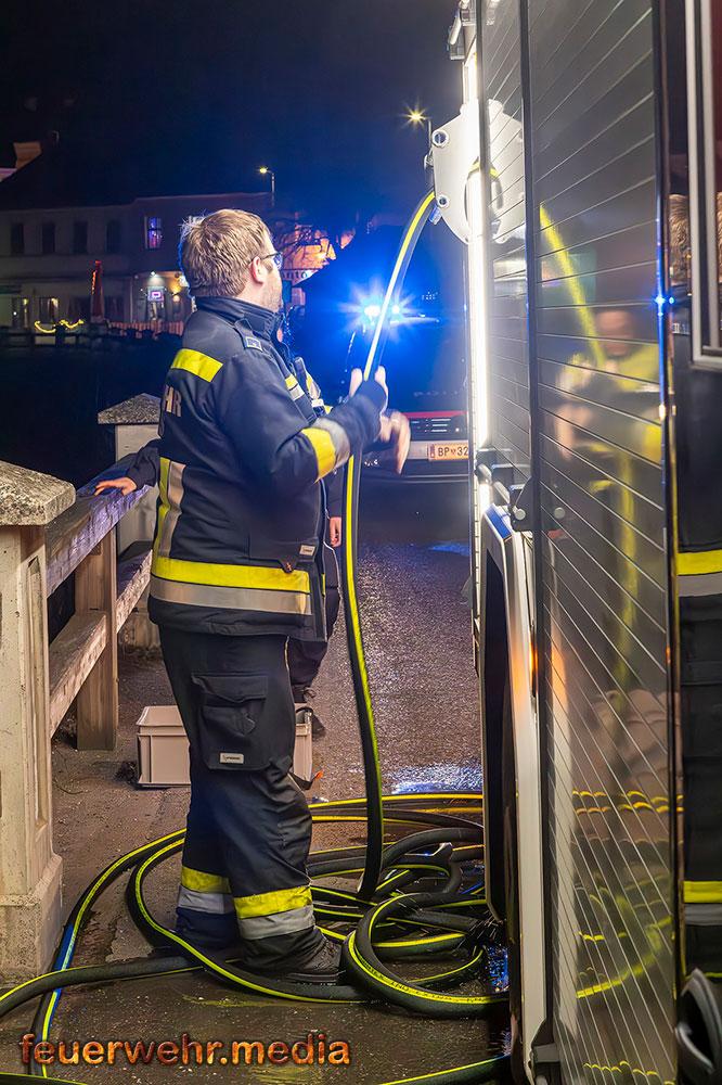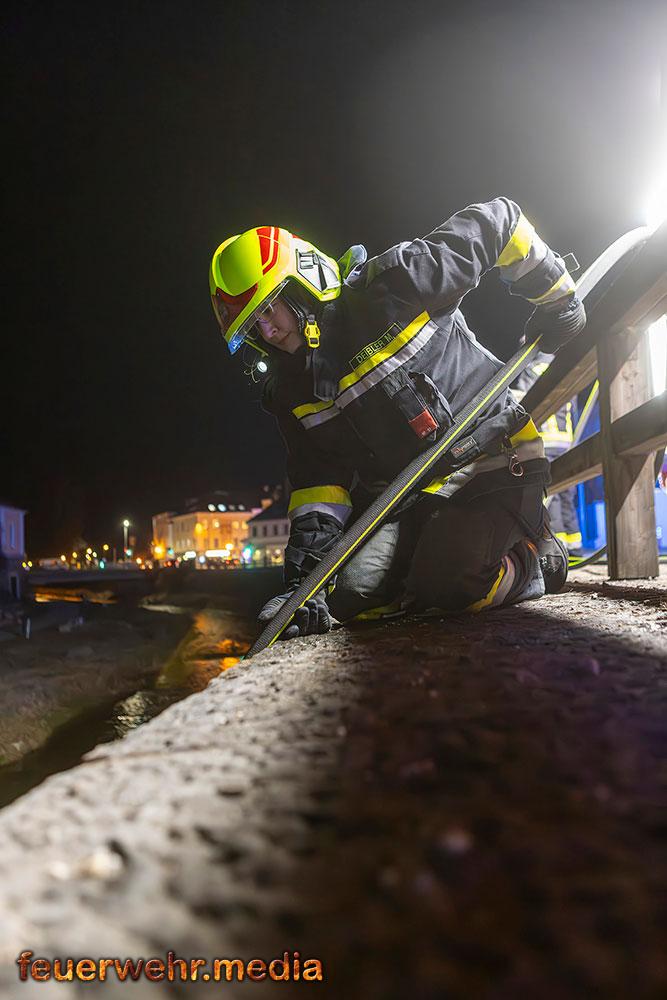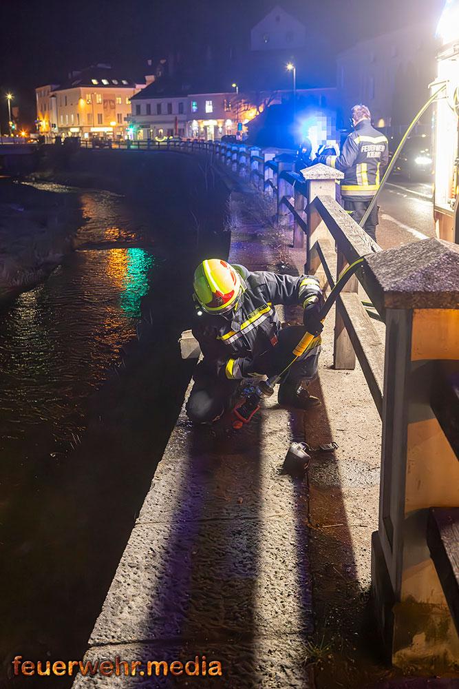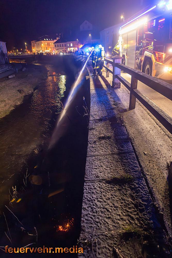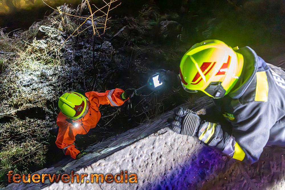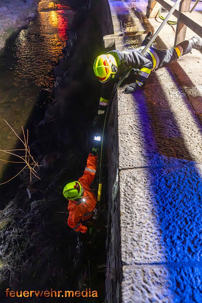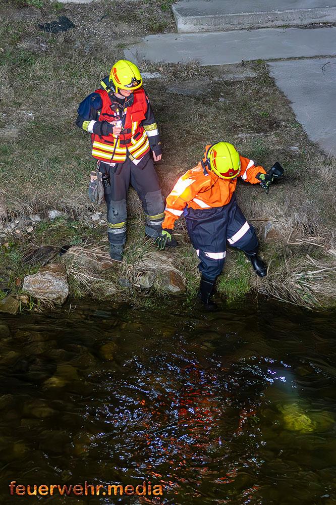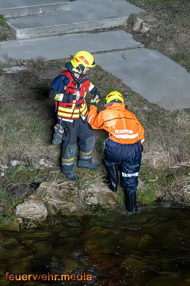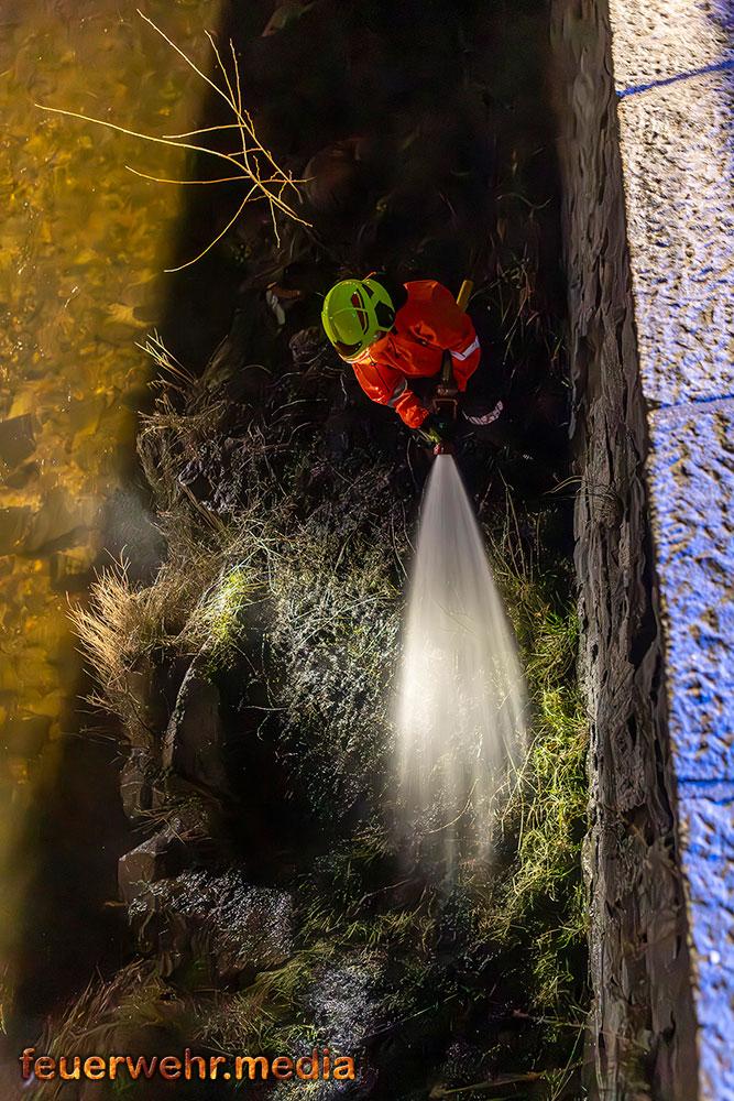 Vom Flussbett bzw. direkt von der Böschung aus konnte die Böschung gezielt mittels Wärmebildkamera auf versteckte Glutnester im Erdreich und Bewuchs untersucht werden. „Durch den Einsatz im Flussbett war es möglich, eine Löschleitung direkt an die Brandstelle heranzuführen und letzte Glutnester in der Böschung effektiv abzulöschen.“