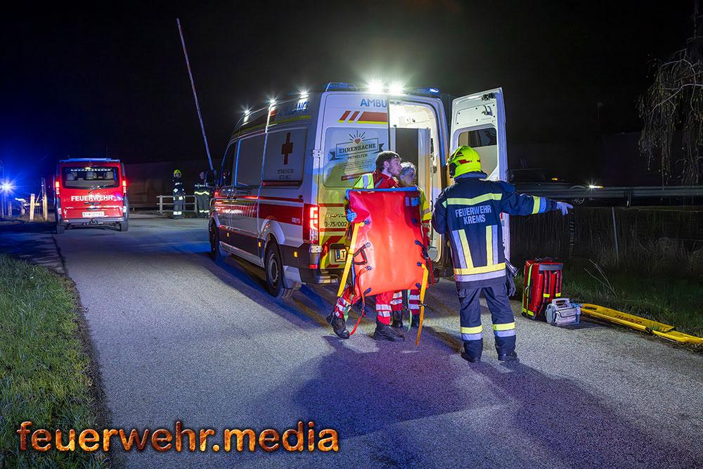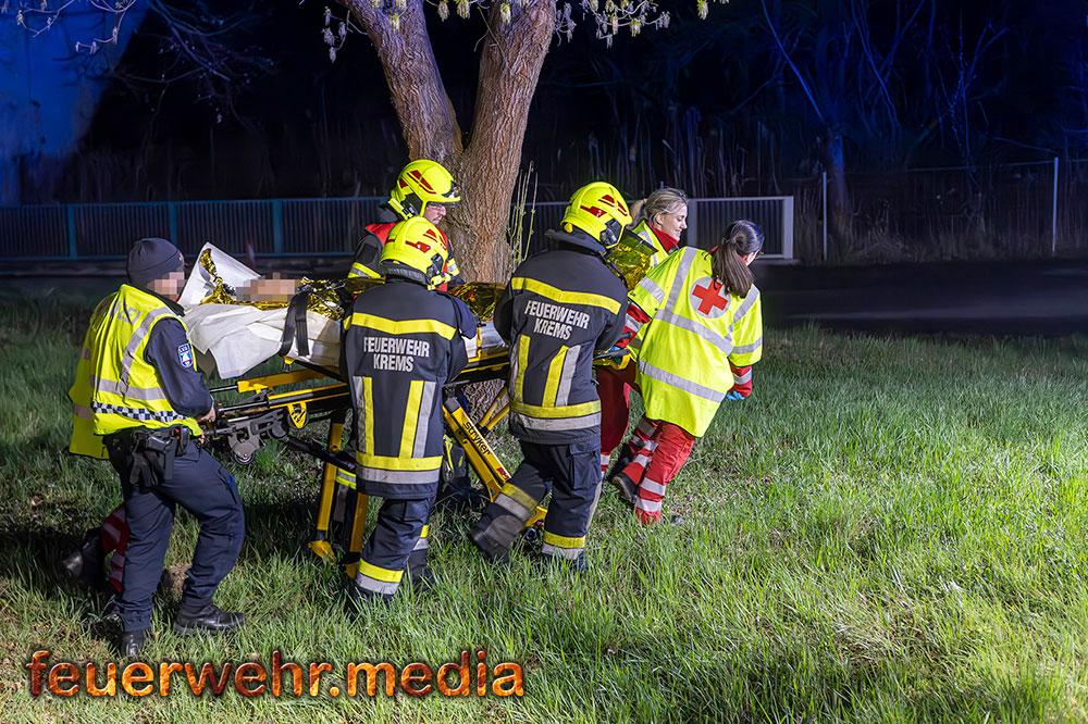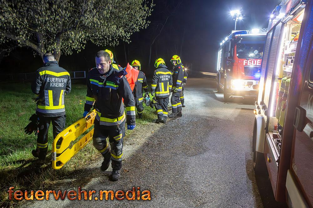 Beim Eintreffen der ersten Einsatzkräfte der Feuerwache Süd befanden sich bereits Sanitäter des Roten Kreuzes Krems vor Ort, um eine Person medizinisch zu versorgen. Die Feuerwehr unterstützte den Rettungsdienst umgehend bei der Patientenversorgung und dem anschließenden Transport zum Rettungstransportwagen. Der Patient wurde zur weiteren Kontrolle in das Universitätsklinikum Krems eingeliefert.
