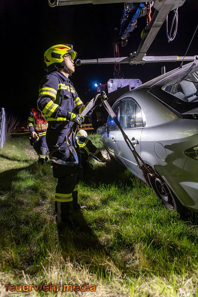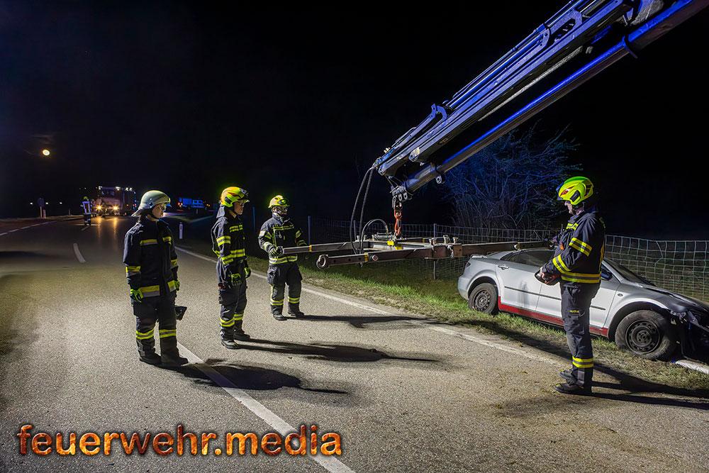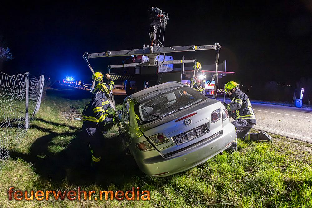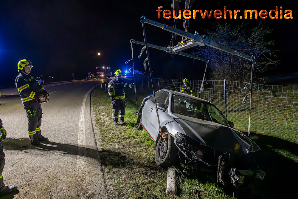 Zu einer aufwendigen Fahrzeugbergung kam es am Abend des 3. April 2026 auf der L114. Ein Pkw-Lenker war von der B33 kommend von der Fahrbahn abgekommen und im Straßengraben gelandet.