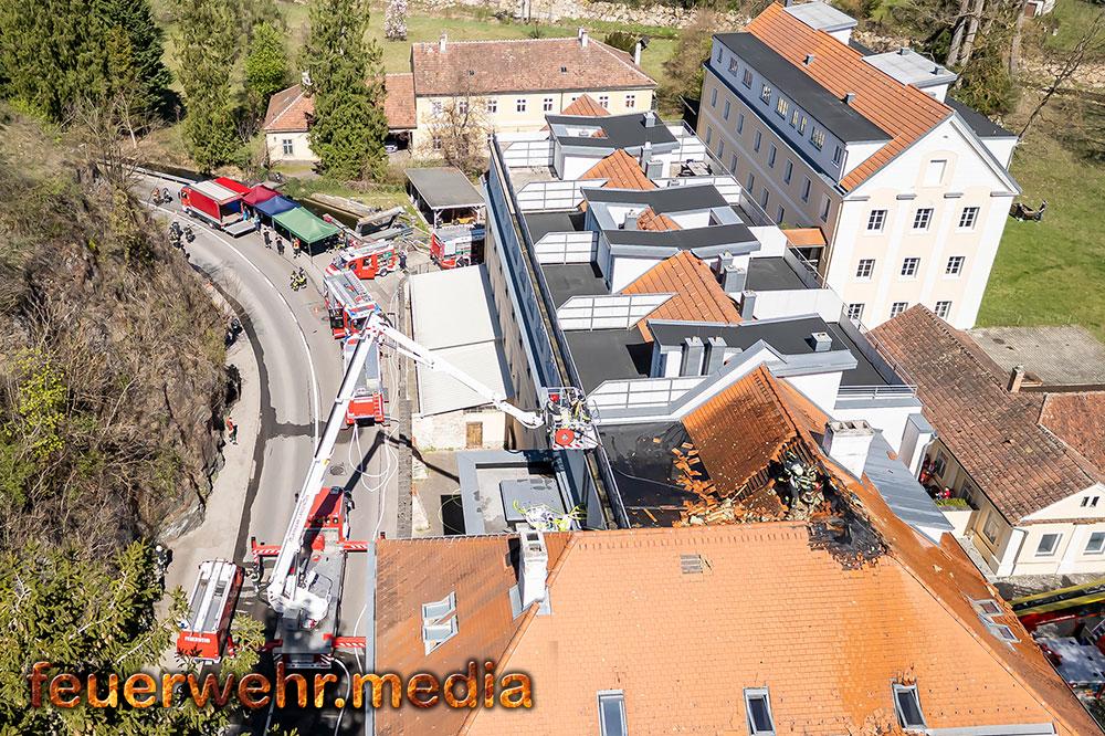 Dachstuhlbrand fordert zehn Feuerwehren - Großeinsatz in Krems-Rehberg