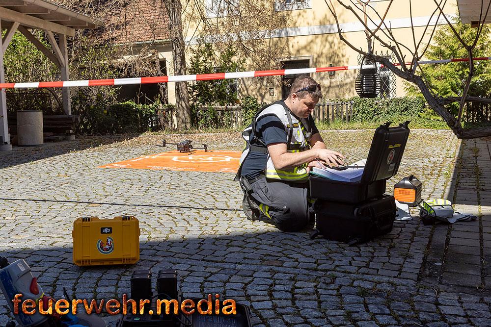 Eine wertvolle Unterstützung für den Einsatz war die Drohne mit Wärmbildkamera, sie unterstützte die Einsatzleitung mit aktuellen Luftbildern sowie Wärmebildaufnahmen.