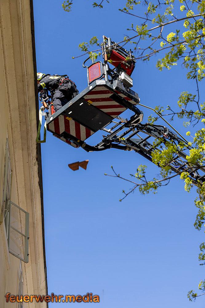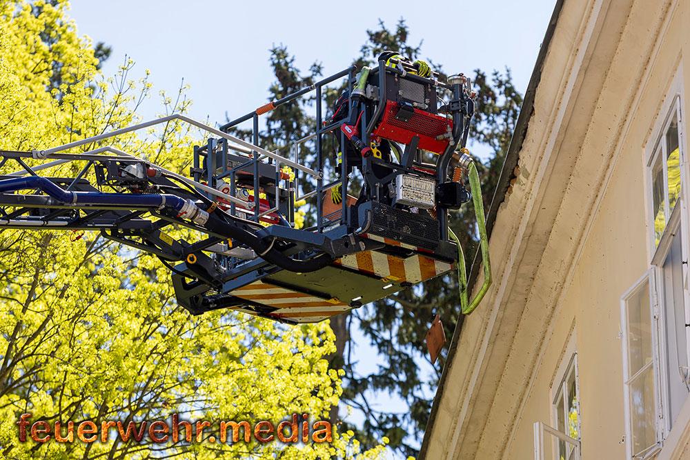 Parallel zu den Arbeiten im Innenbereich starteten die Einsatzkräfte auch einen Außenangriff. Um von beiden Seiten gleichzeitig vorgehen zu können, ließ der Einsatzleiter die Feuerwehr Langenlois mit dem Hubrettungsgerät nachalarmieren. Im Zuge der Brandbekämpfung kam es zu einer Durchzündung, wobei sich das Feuer rasch über das gesamte Geschoss ausbreitete. Ein Atemschutztrupp konnte sich rechtzeitig in Sicherheit bringen.