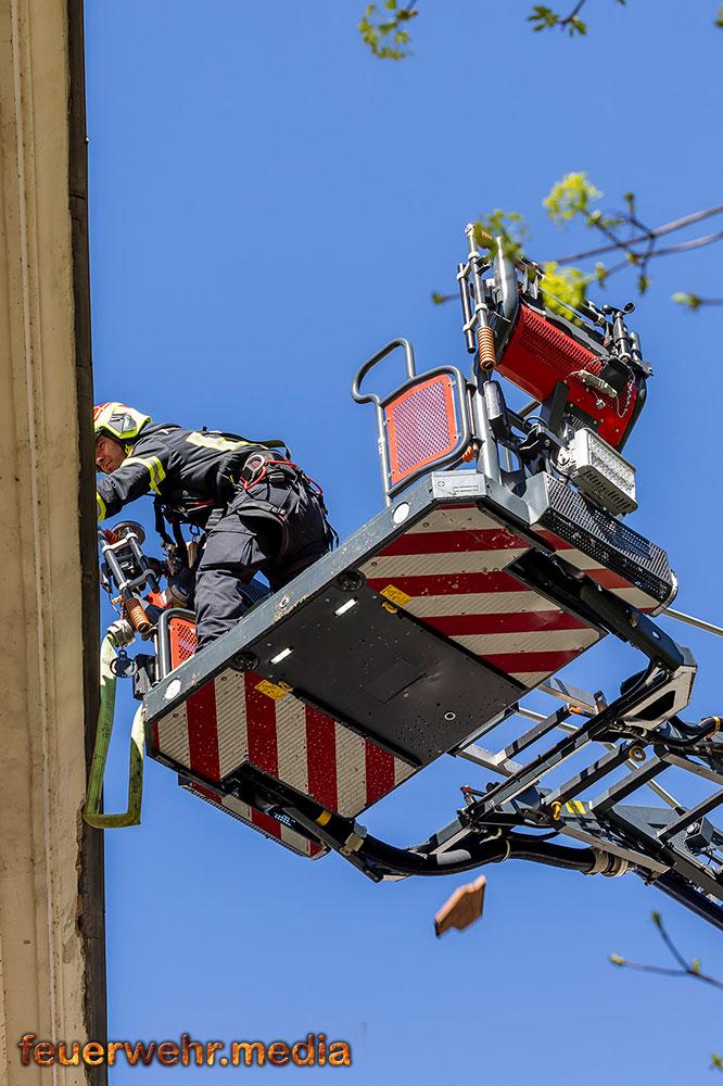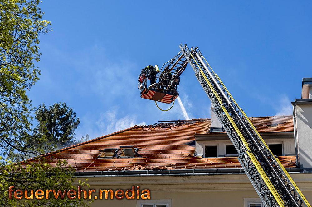 Um die Brandlast zu brechen war ein großer Löschwassereinsatz notwendig. Um einen Schaden durch das Löschwasser am Gebäude gering zu halten wurden Nasssauger und Pumpen in Stellung gebracht, um das Löschwasser aufzufangen und zu beseitigen. Nachdem der Brand gelöscht und die Nachlöscharbeiten abgeschlossen waren, wurde ein Statiker hinzugezogen, der das Gebäude begutachtete und behördlich sperrte.