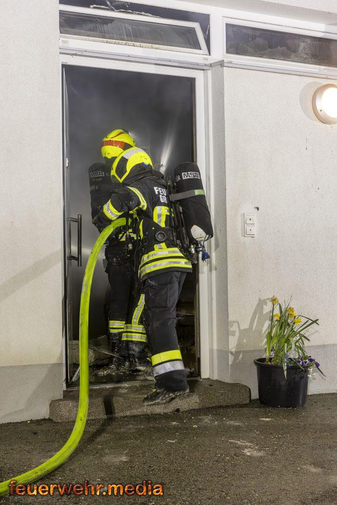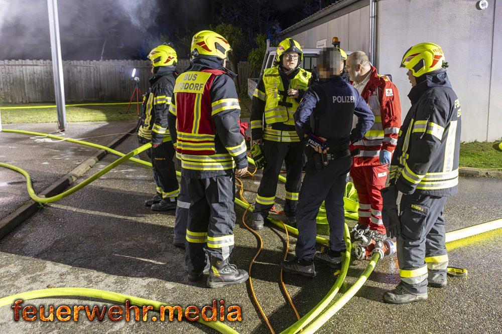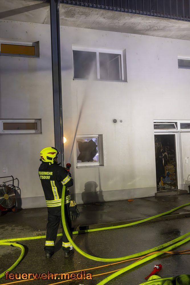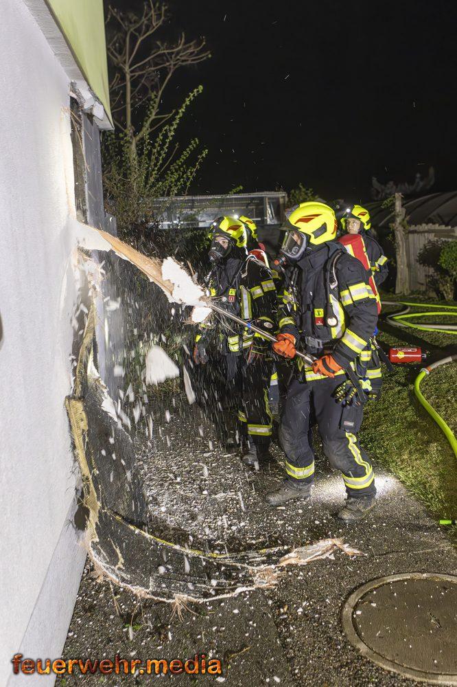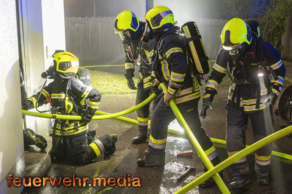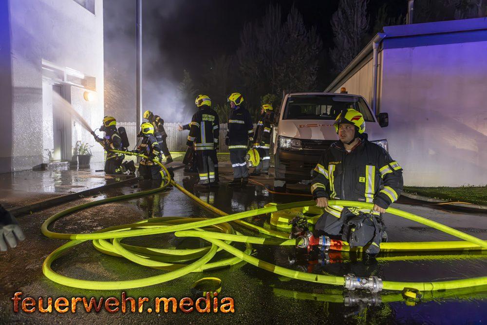 Die Feuerwehr Etsdorf startete sofort einen Außenangriff an der Rückseite des Gebäudes, während parallel ein Innenangriff über die Eingangstür vorgetragen wurde. Die Feuerwehr Hadersdorf unterstützte die Brandbekämpfung auf der Gebäuderückseite maßgeblich.