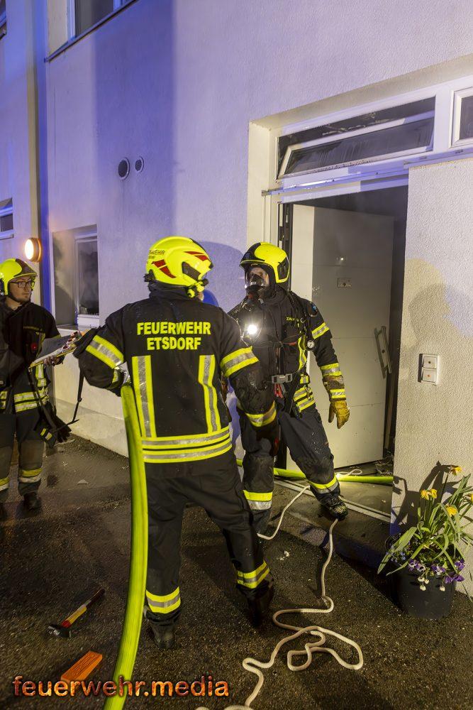 Nachdem der Brand gelöscht war, wurde das Objekt mittels Wärmebildkameras auf Glutnester kontrolliert und umfangreich belüftet. Die Feuerwehr Etsdorf stand mit 24 Mitgliedern und drei Fahrzeugen rund 4,5 Stunden im Einsatz. Nach der polizeilichen Aufnahme wurde die Wohnung provisorisch verschlossen. Die Reinigungs- und Nachbereitungsarbeiten werden die Einsatzkräfte noch einige Tage beschäftigen.