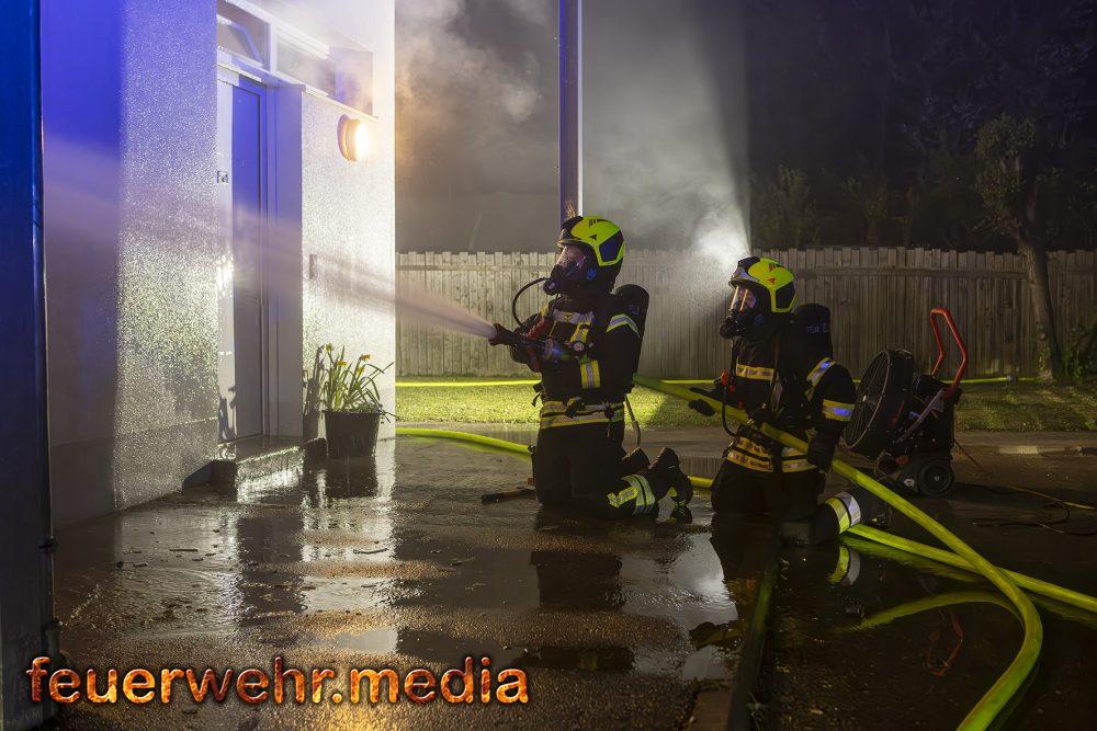 Trotz der enormen Brandintensität und erschwerter Bedingungen durch bereits beschädigte Gebäudeteile im Inneren gelang es den Atemschutztrupps der vier Feuerwehren, die Flammen unter Kontrolle zu bringen. Ein Übergreifen auf die unmittelbar angrenzenden Wohneinheiten konnte durch den gezielten Einsatz mehrerer Löschleitungen erfolgreich verhindert werden.