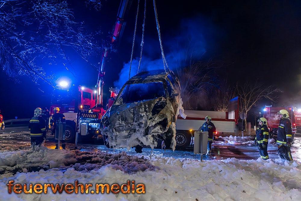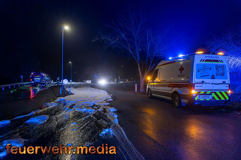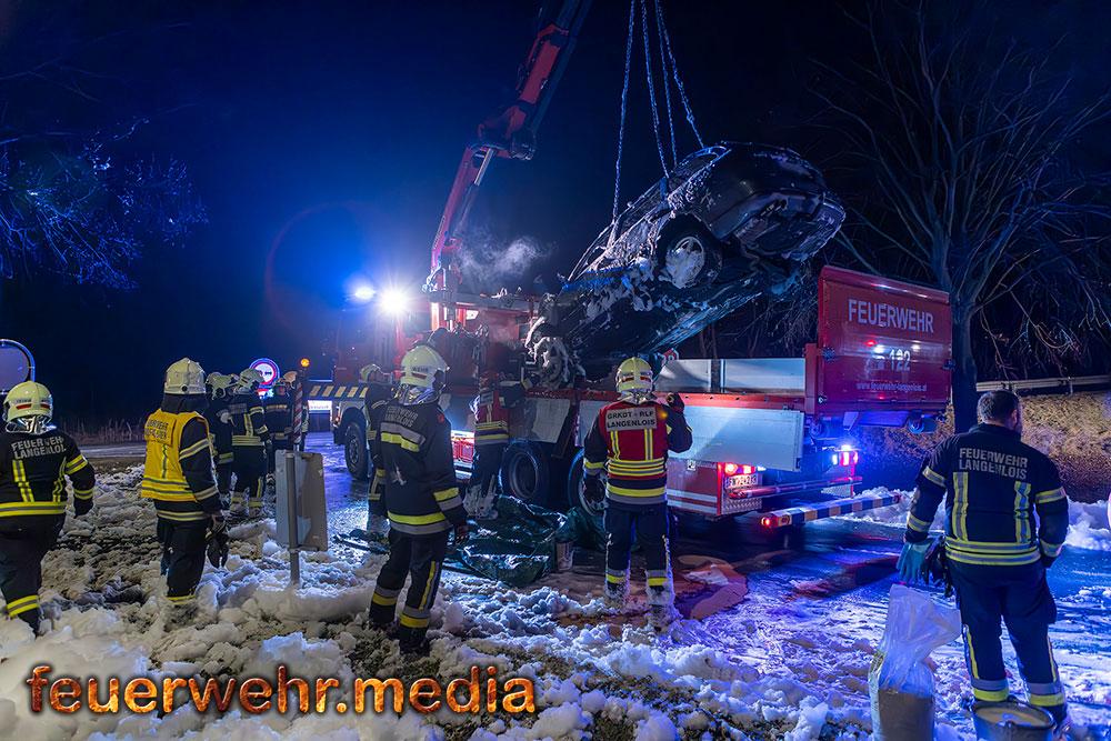 • Pkw-Bergung mittels Seilwinde bei der Ortseinfahrt Gedersdorf