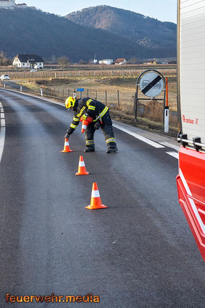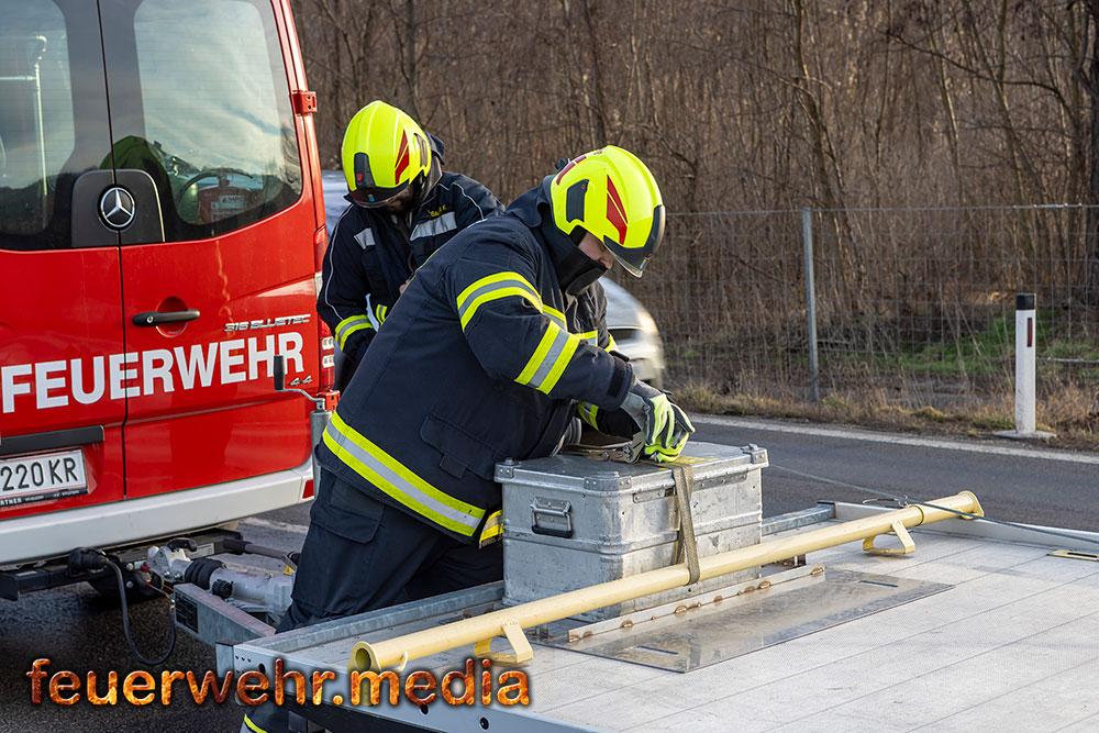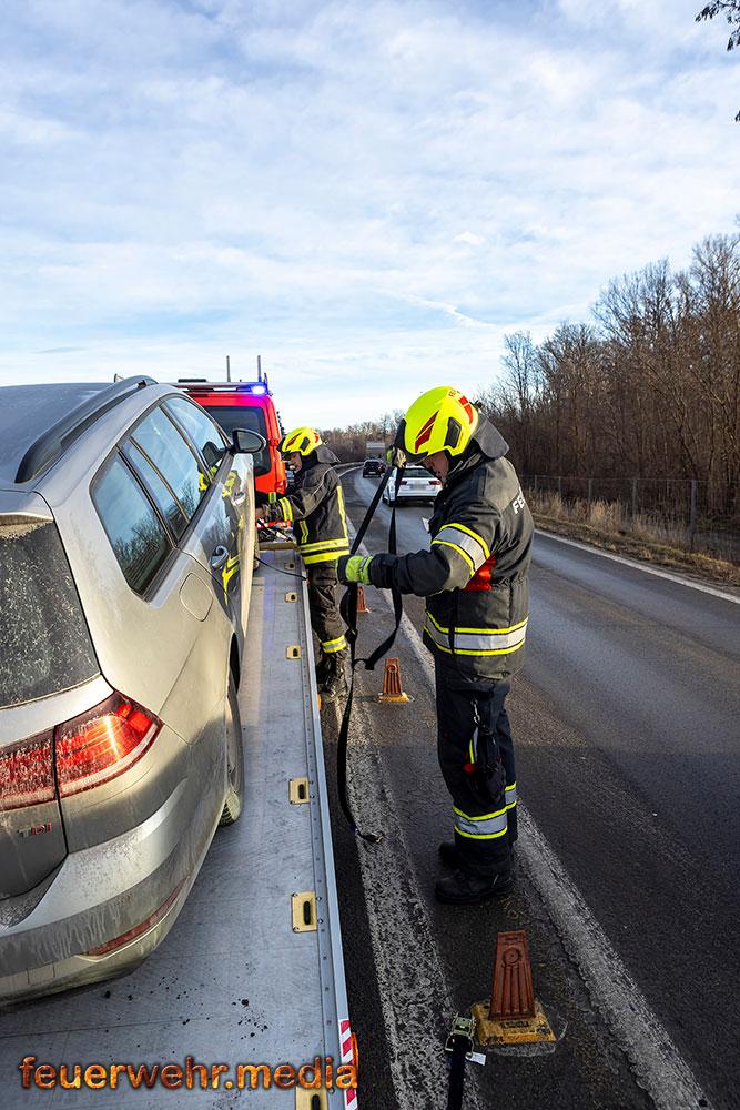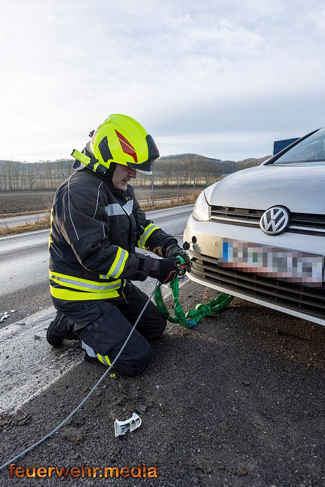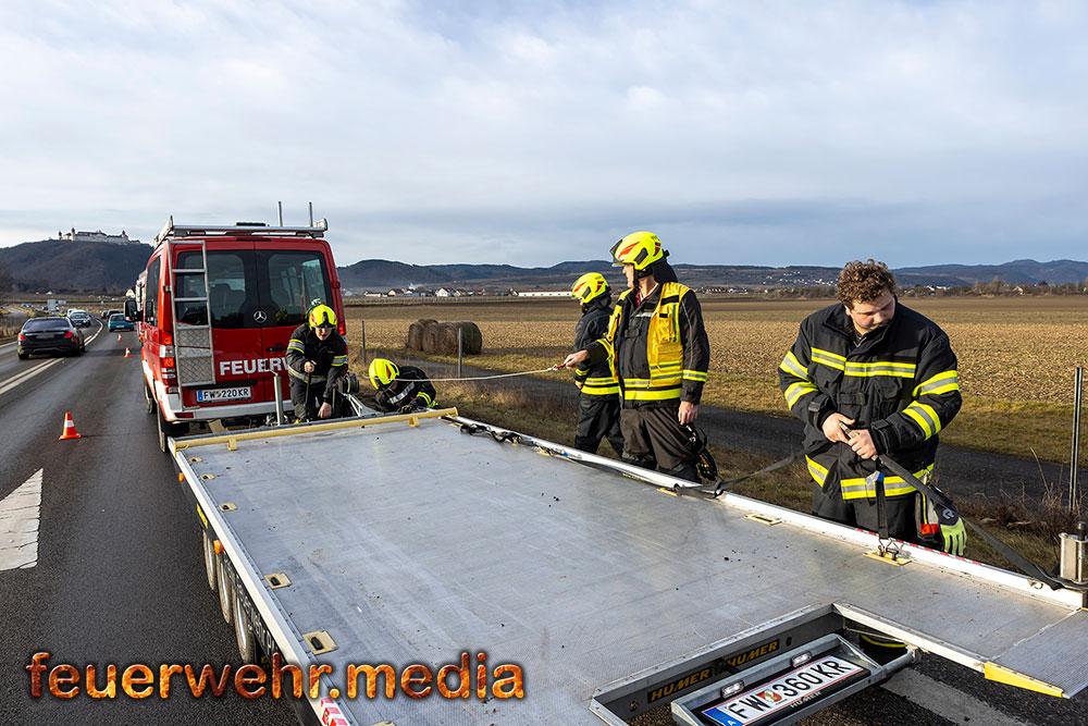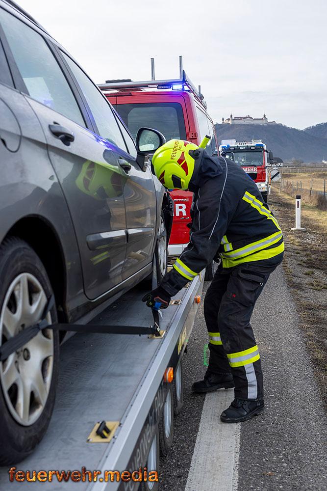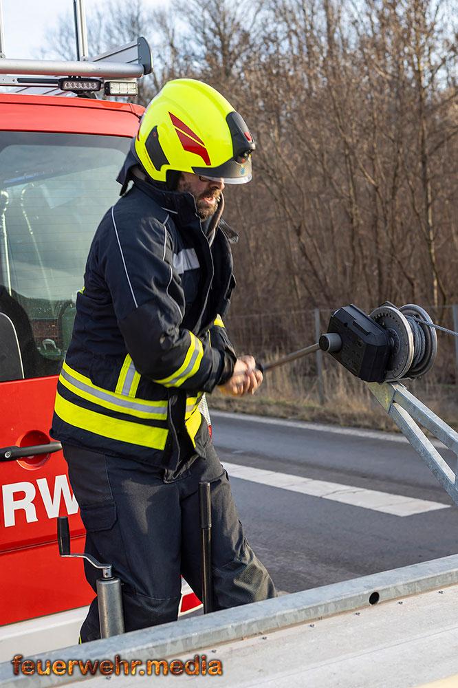 • Pkw-Bergung mittels Seilwinde bei der Ortseinfahrt Gedersdorf